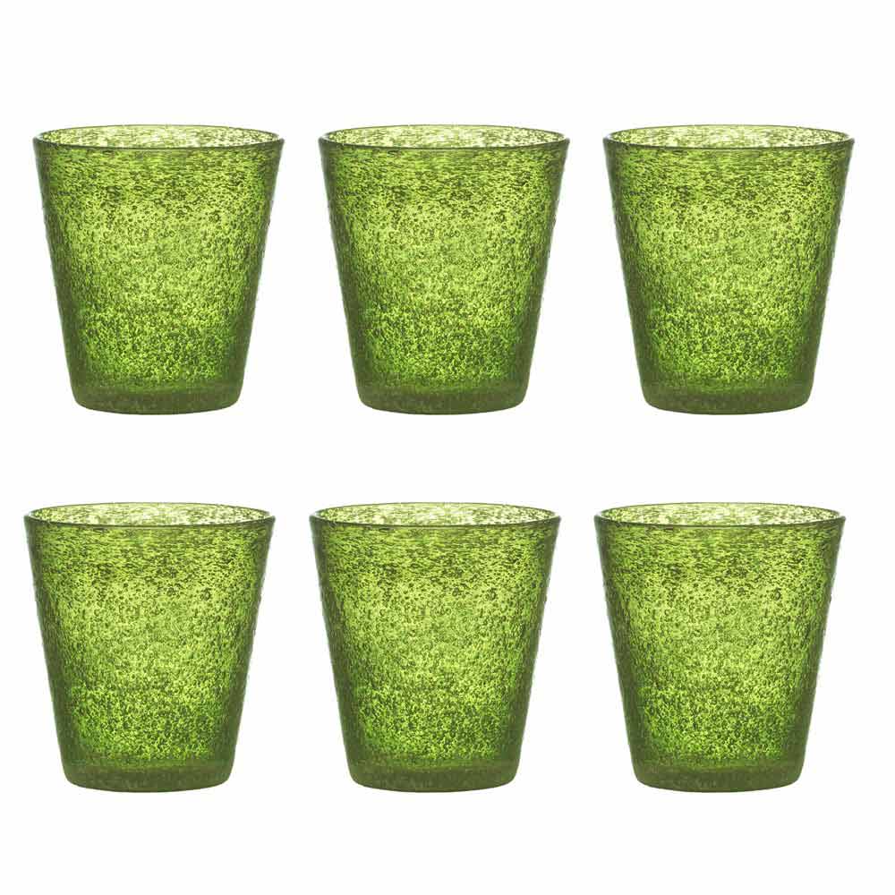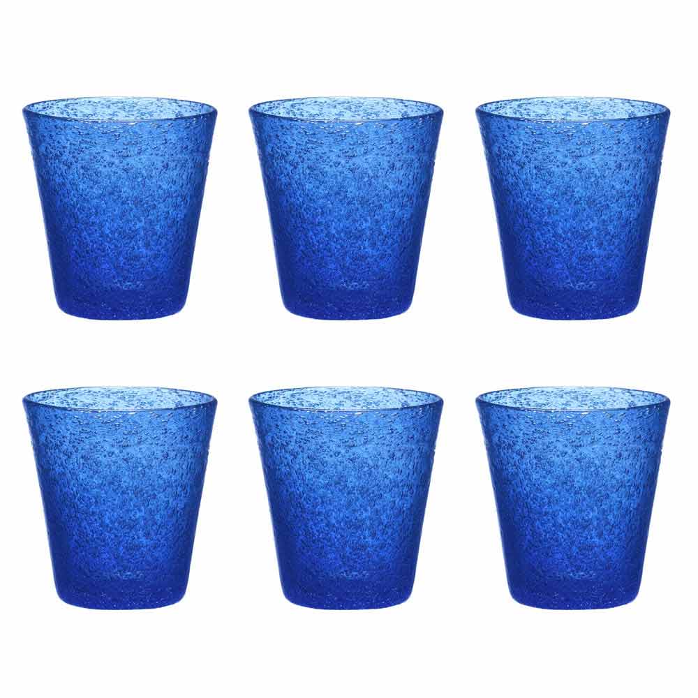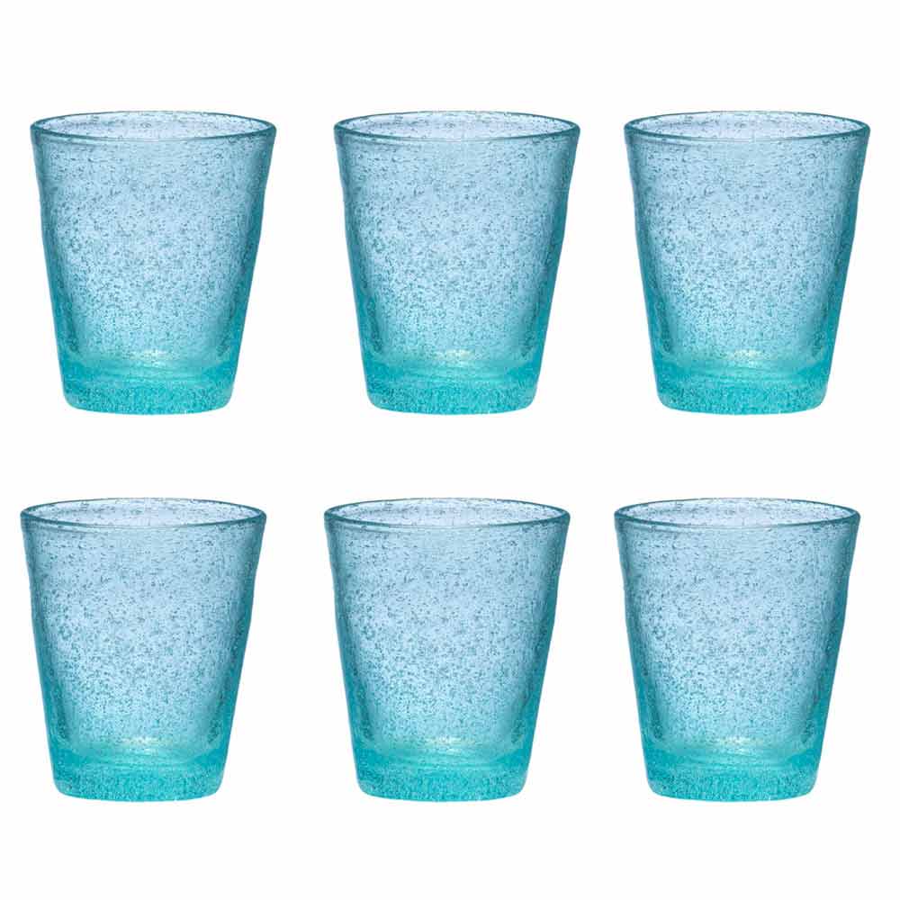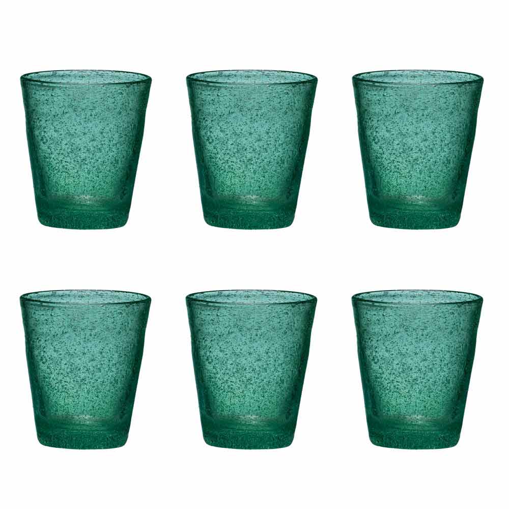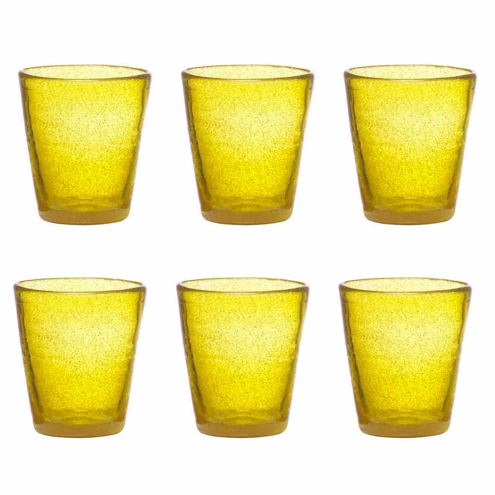 12 farbige Gläser für Wasser oder Getränke aus mundgeblasenem Glas mit modernem Design.
