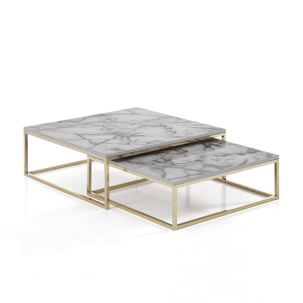Set mit 2 Couchtischen aus Stahl und MDF
