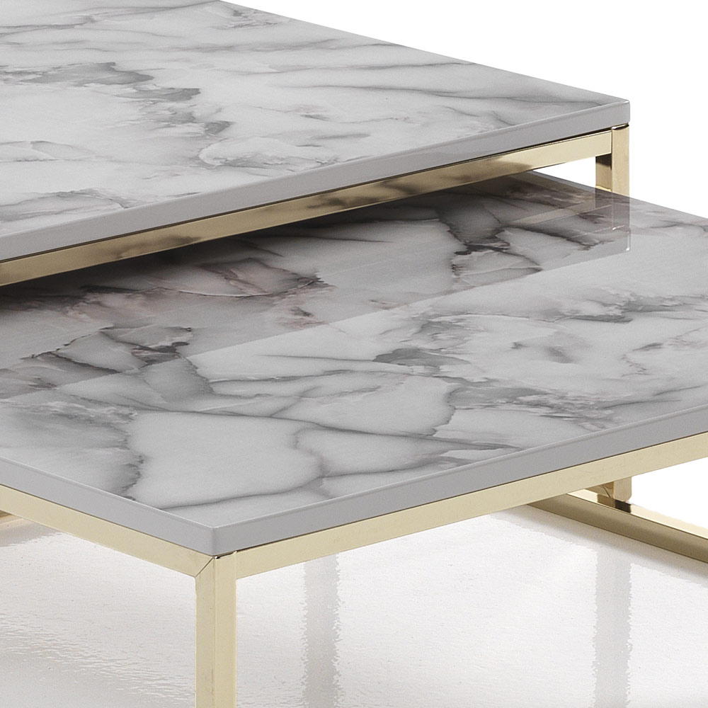 - Struktur aus poliertem Gold, Platte aus poliertem weißem Marmor