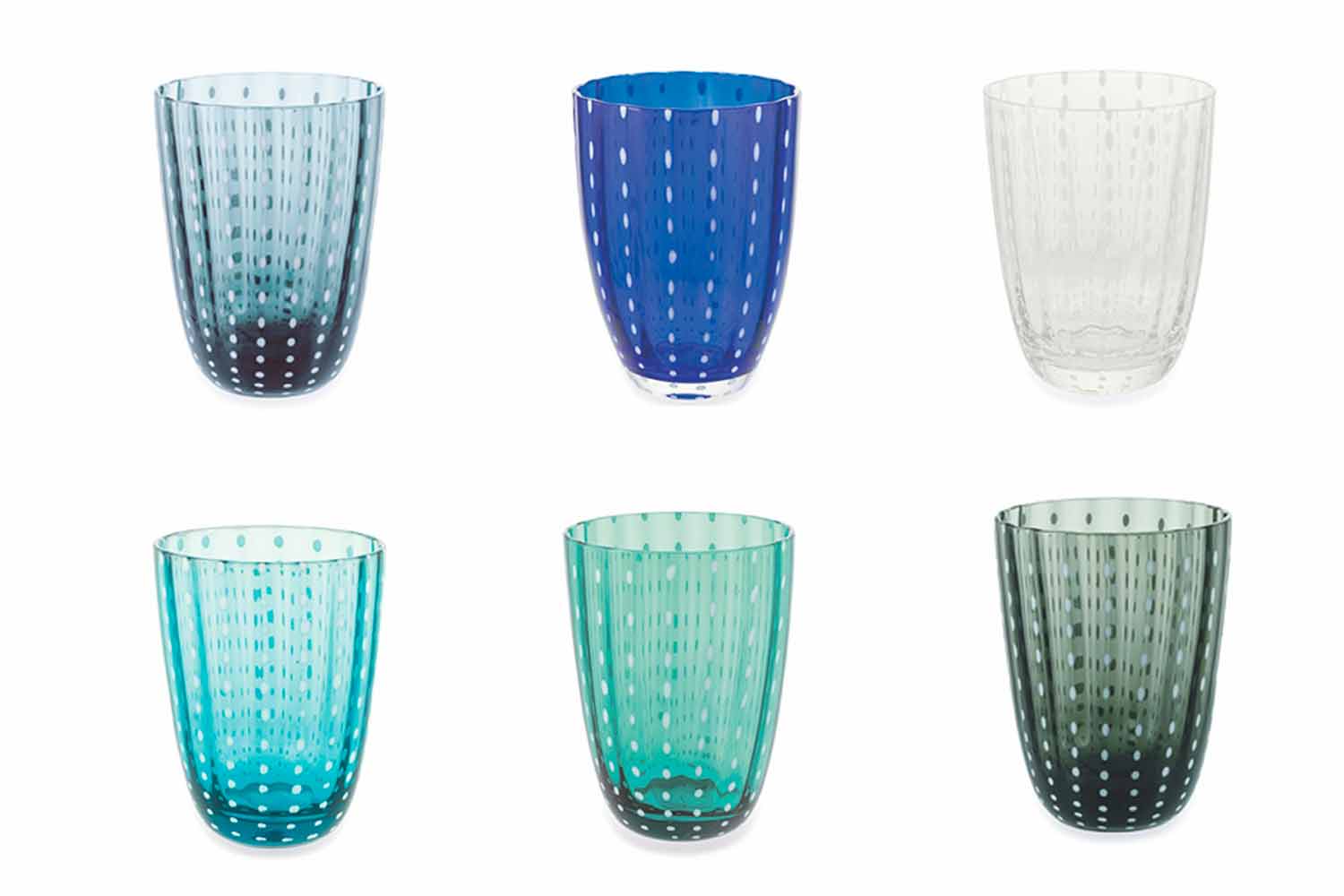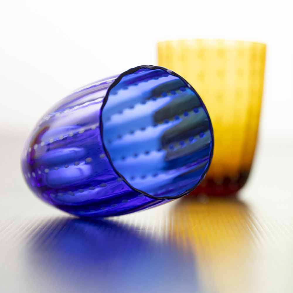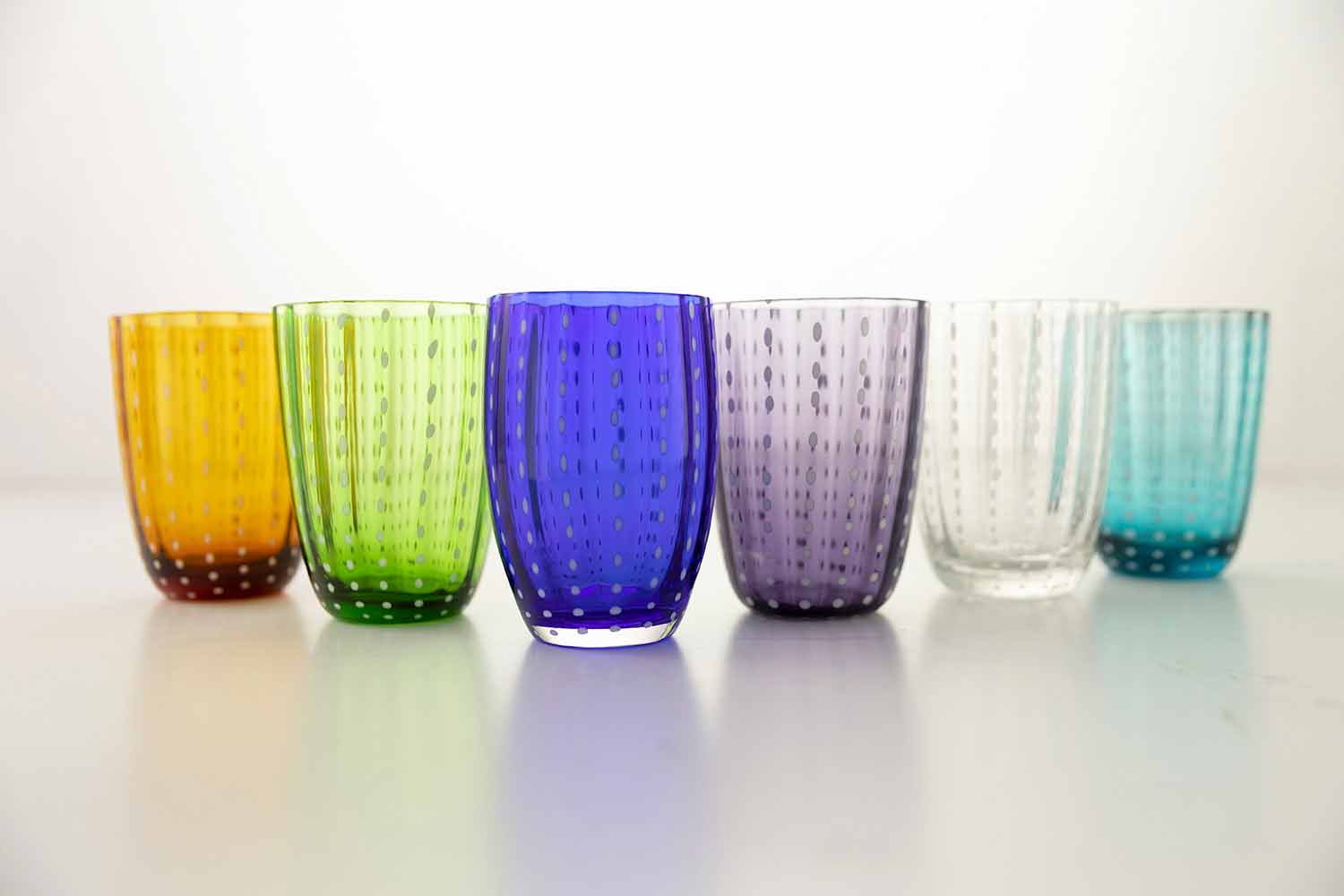 Set von 12 modernen Design farbigen Gläsern für Wasser.