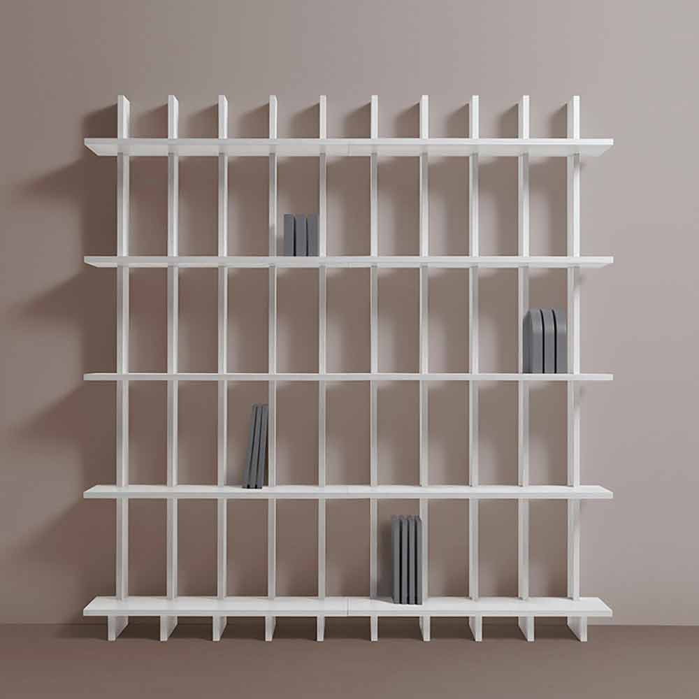 Wandbücherregal aus offenporig lackierter Esche mit Shabby-Chic-Design in verschiedenen Farben, hergestellt in Italien.