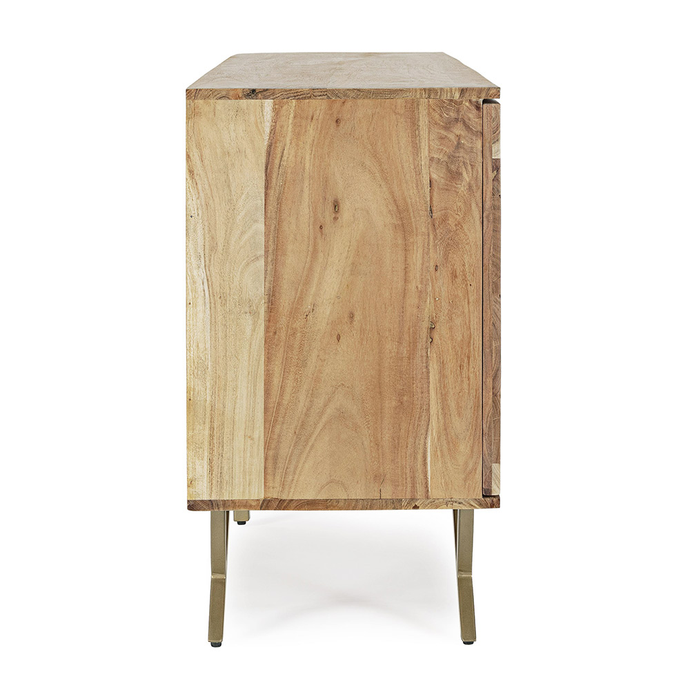 Dieses Design-Sideboard für das Wohnzimmer hat eine Struktur aus Akazienholz , Rückwände und Schubladeninnenseiten aus Sperrholz mit Polyurethanlack-Finish.