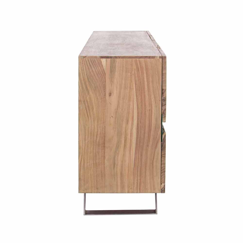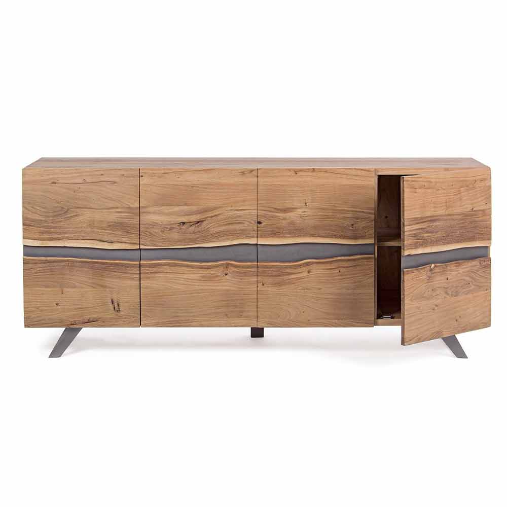 Struktur aus Akazienholz , Beine aus epoxidpulverbeschichtetem Stahl . Türen mit Metalleinsätzen . Finish auf Basis von Polyurethanfarbe. Türfach inklusive Regal.