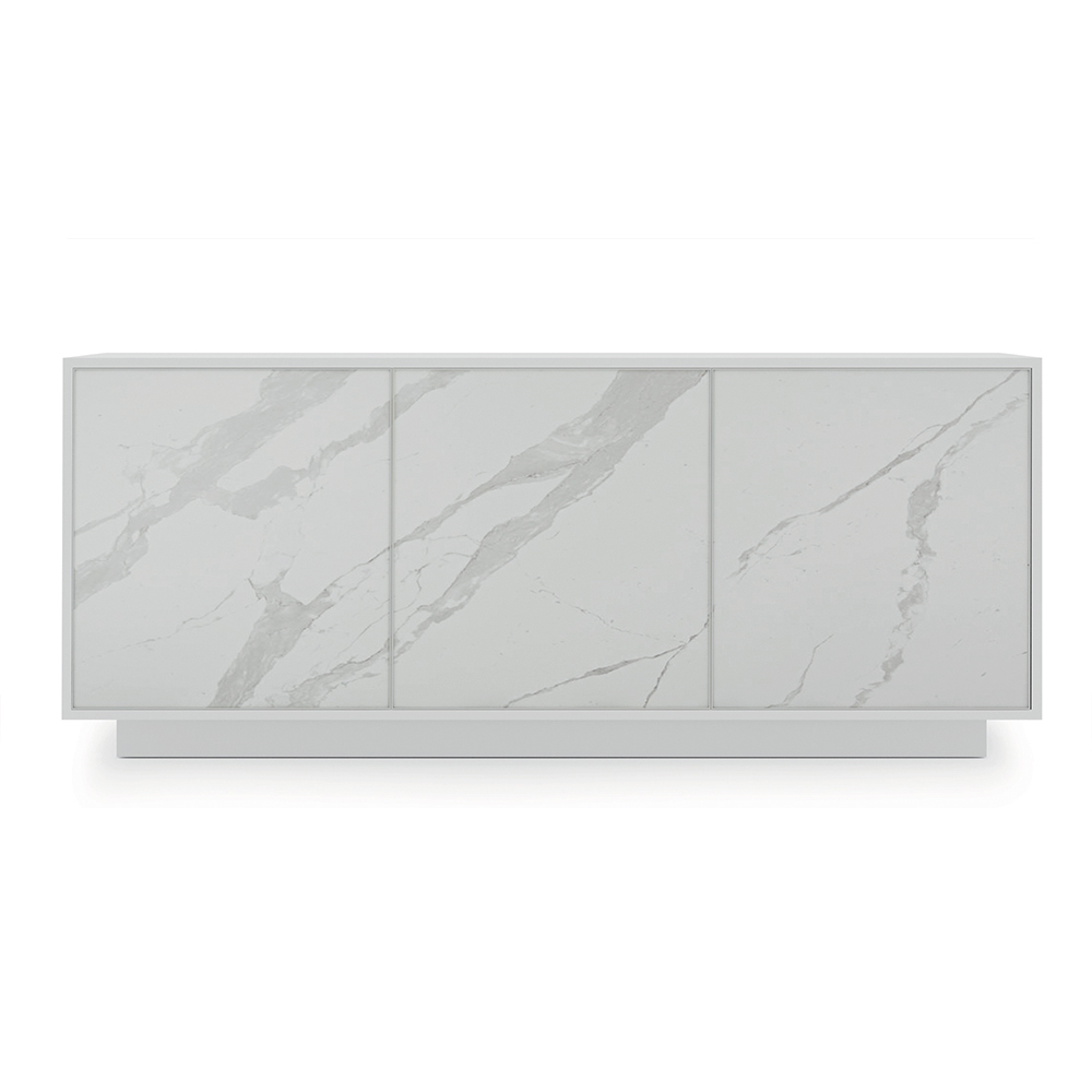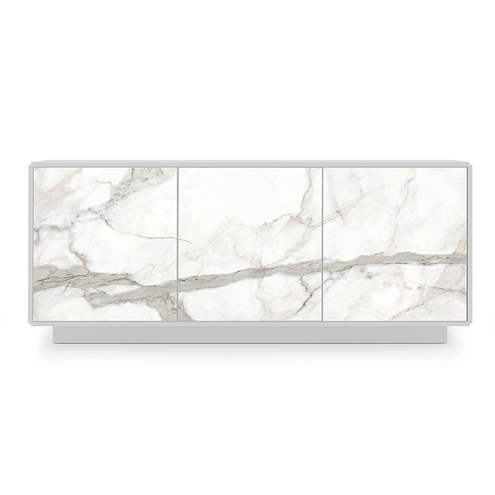 Wohnzimmer-Sideboard aus lackiertem Holz mit Keramiktüren, hochwertige Qualität Made in Italy.