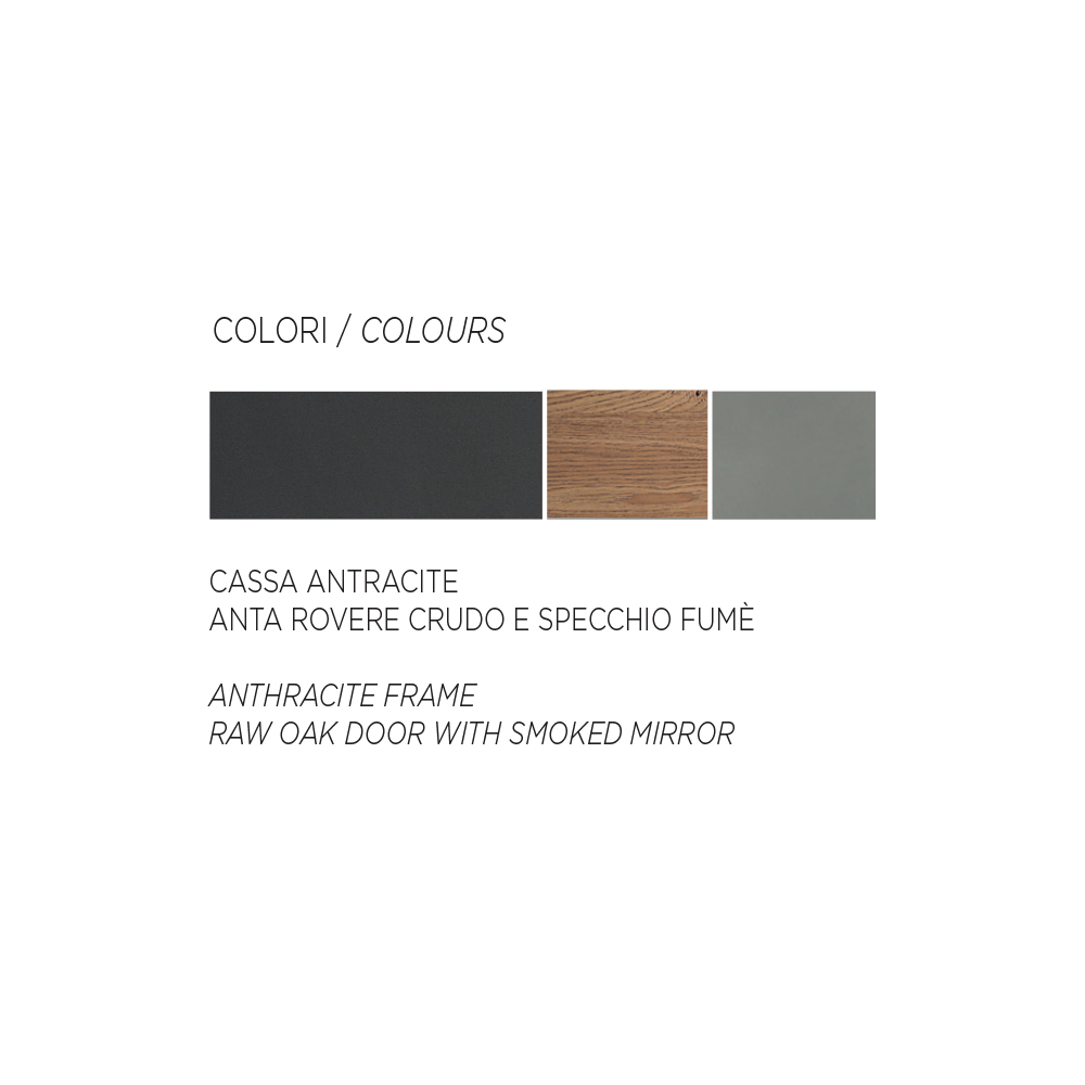 • Türen aus thermischer Eiche und geräucherter Spiegel.