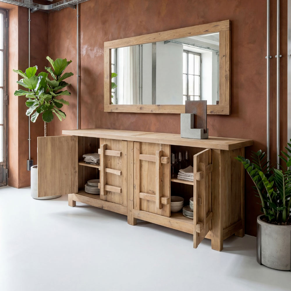 Sideboard aus naturbelassenem, gealtertem Kiefernholz mit 2 oder 4 Türen - Aituno