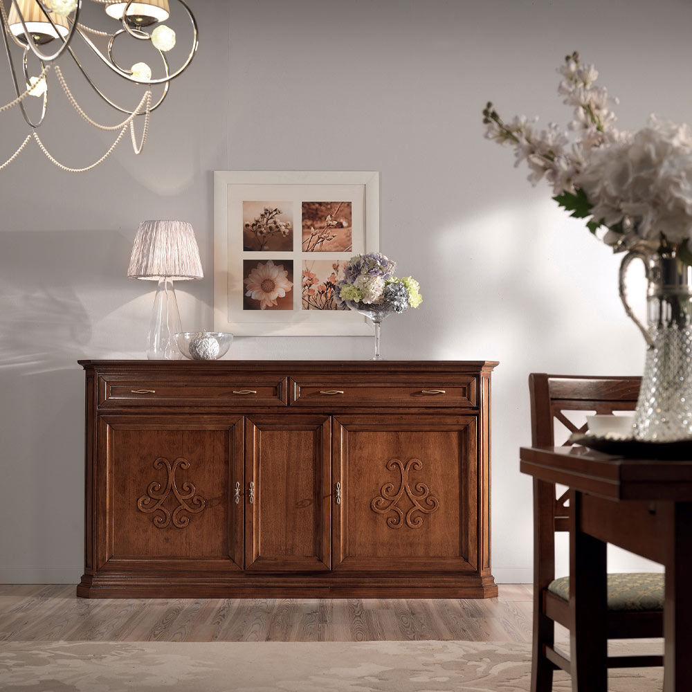 VORSICHTSMASSNAHMEN: Da es sich bei Holz um ein lebendiges und feuchtigkeitsempfindliches Material handelt, muss besonders darauf geachtet werden, die Möbel in Häusern mit Putz aufzustellen, der mindestens einen Monat lang ausgeruht und trocken war. Wir empfehlen jedoch, für einige Monate einen Abstand von mindestens 5 Zentimetern zur Wand zu lassen und die Räume häufig zu lüften.
