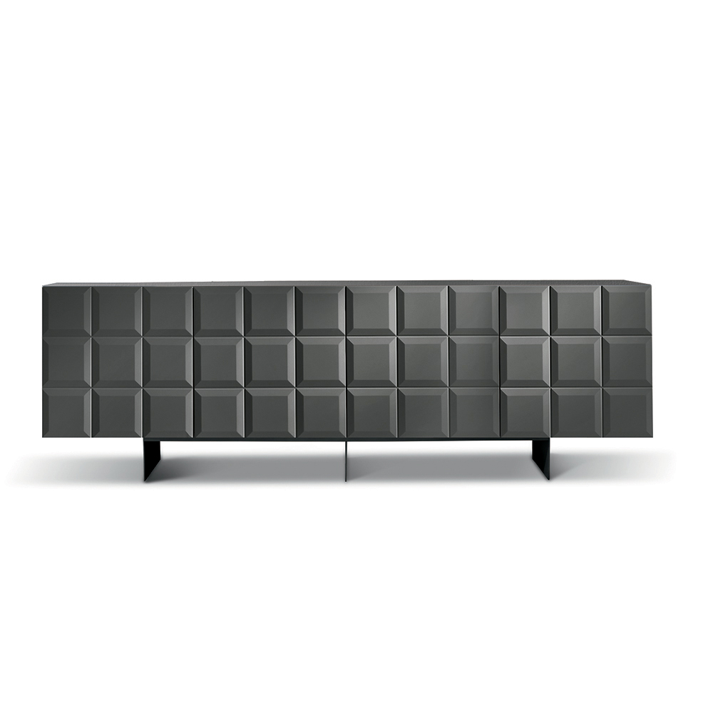 In Italien gefertigtes Designer-Sideboard mit geprägten geometrischen Türen und Metallgestell