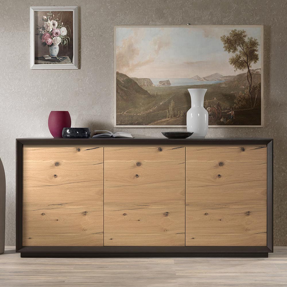 Furniertes Sideboard mit Holzsockel, hergestellt in Italien.
