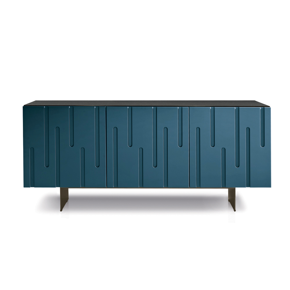 In Italien gefertigtes Designer-Sideboard mit Türen in Stalaktitenoptik und Metallgestell