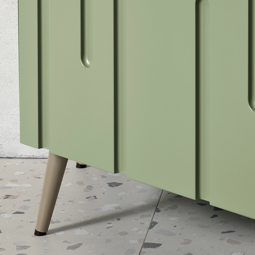 • Korpus grün mit grünen Türen – 5 perlbeige lackierte Metallfüße, 130 x 38 x 20 cm