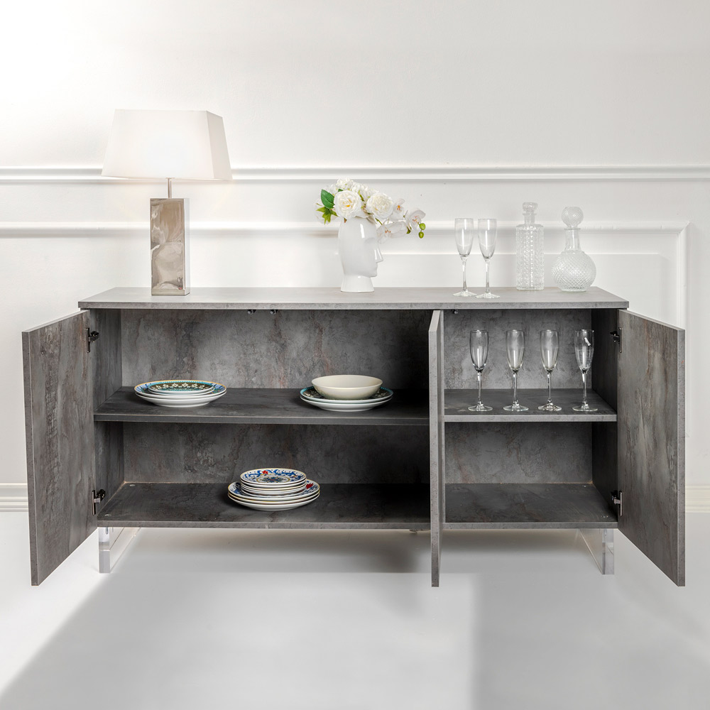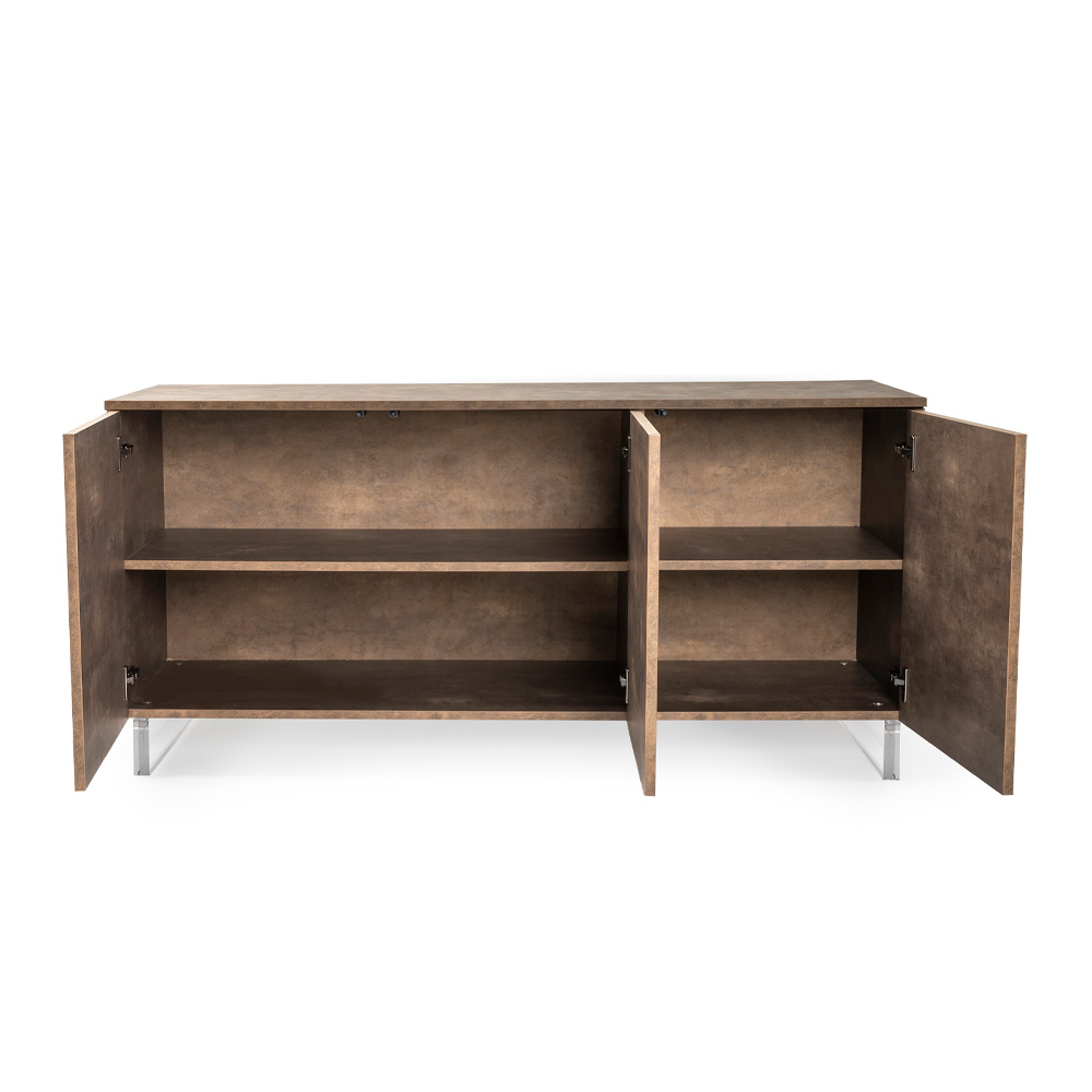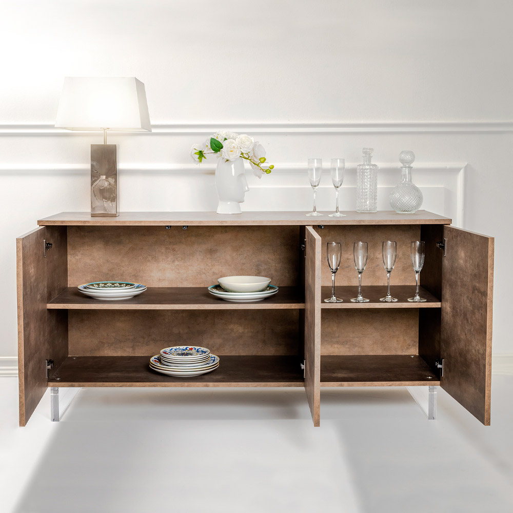 Die Oberfläche verspricht, ihren ursprünglichen Glanz beizubehalten, ein Grundstein, der Ihre Investition langfristig sichert. Mit seiner auf den täglichen Bedarf ausgelegten Funktionalität bietet dieses Sideboard großzügigen Platz, um alle Gegenstände besser zu organisieren, während die Eleganz des Designs es zu einem unbestrittenen Protagonisten in Ihrer Umgebung macht.