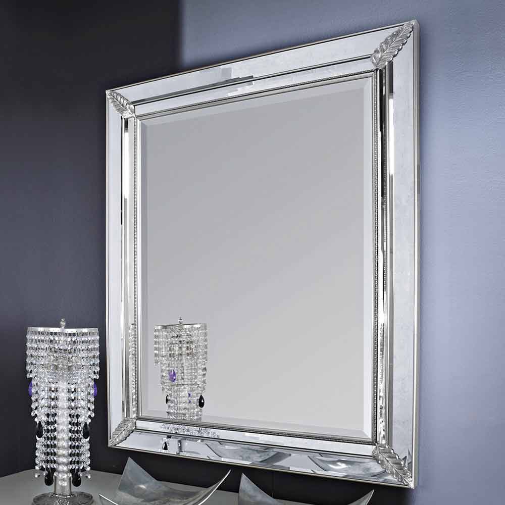 Der Hauch von Klasse wird durch die zarten , an den Ecken eingravierten Akzente verliehen, die ein Gefühl von Raffinesse und Liebe zum Detail vermitteln. Dieser Spiegel ist ein unverwechselbares Designelement, das sowohl als Blickfang in einem Raum als auch als elegante Ergänzung zu anderen Möbelstücken dienen kann.