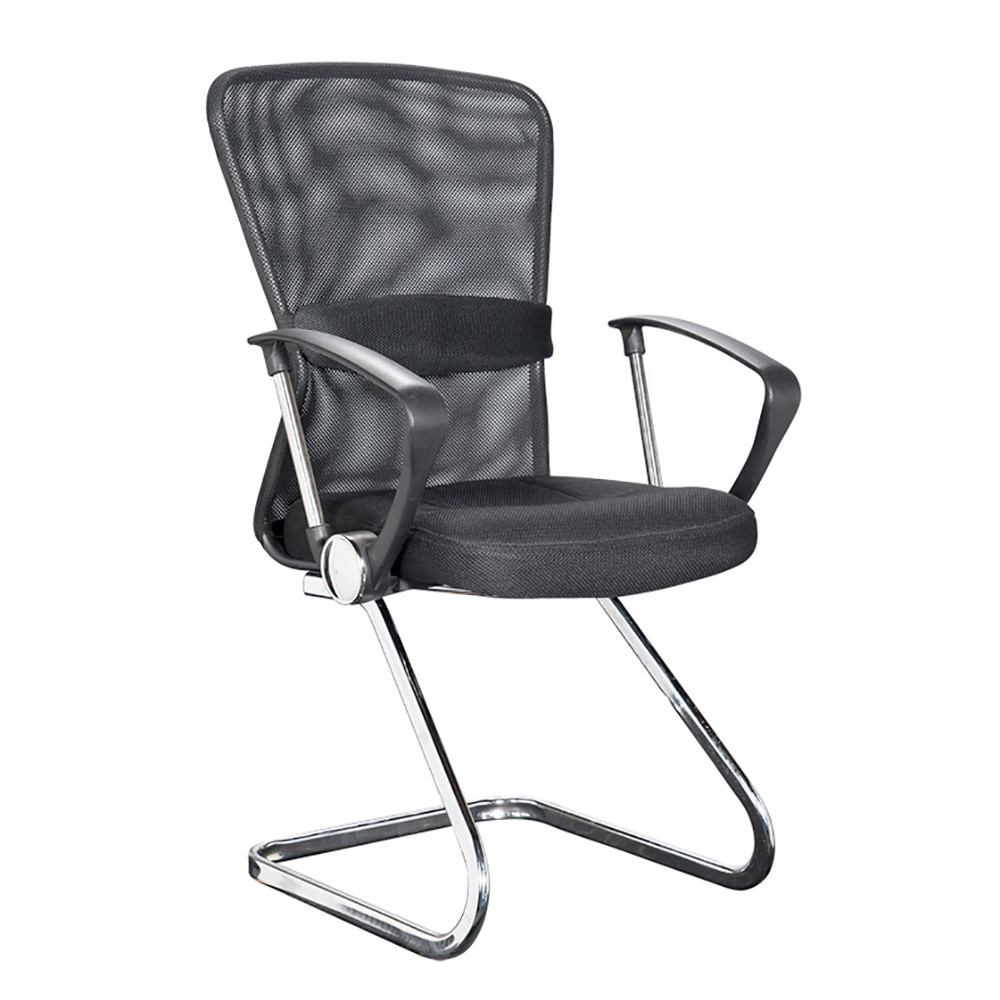 Bürosessel auf Kufen aus Stahl, Armlehnen und 2-teiligem Netzgewebe.