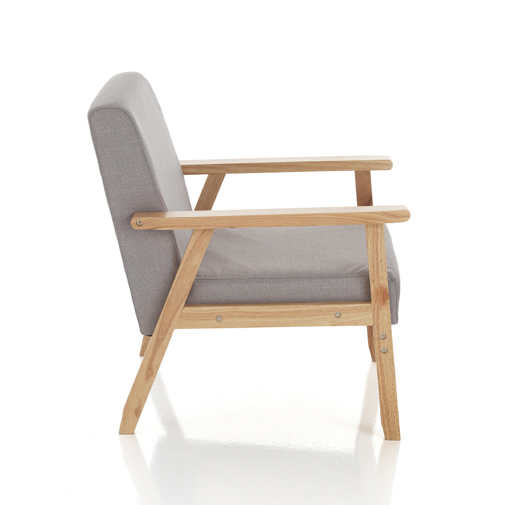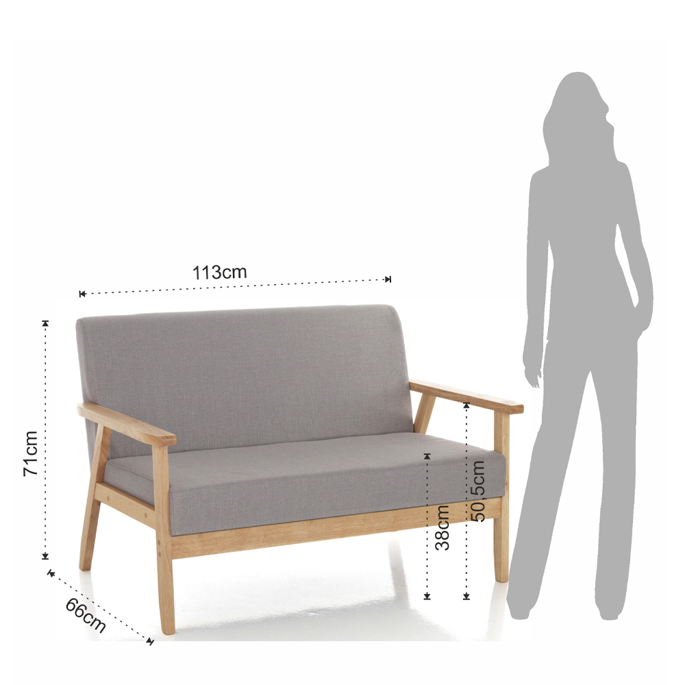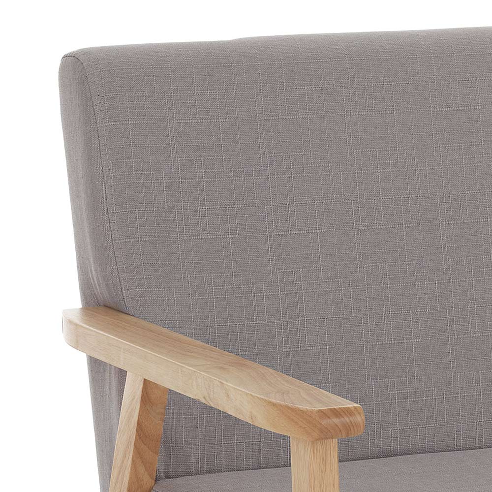 , bezogen mit nicht abnehmbarem grauem Stoff, Füße aus