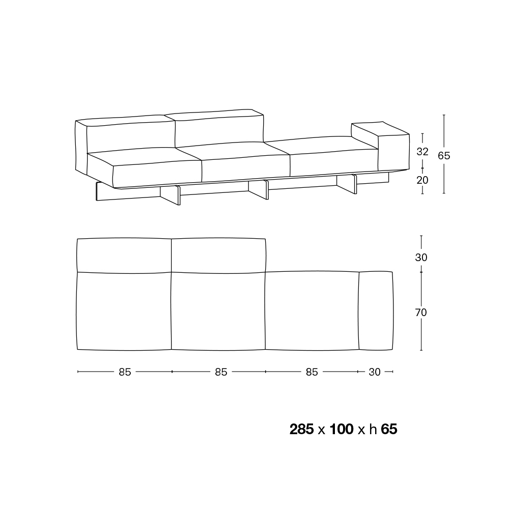Maße:- Länge 285 cm x Tiefe 100 cm x Höhe 65 cm