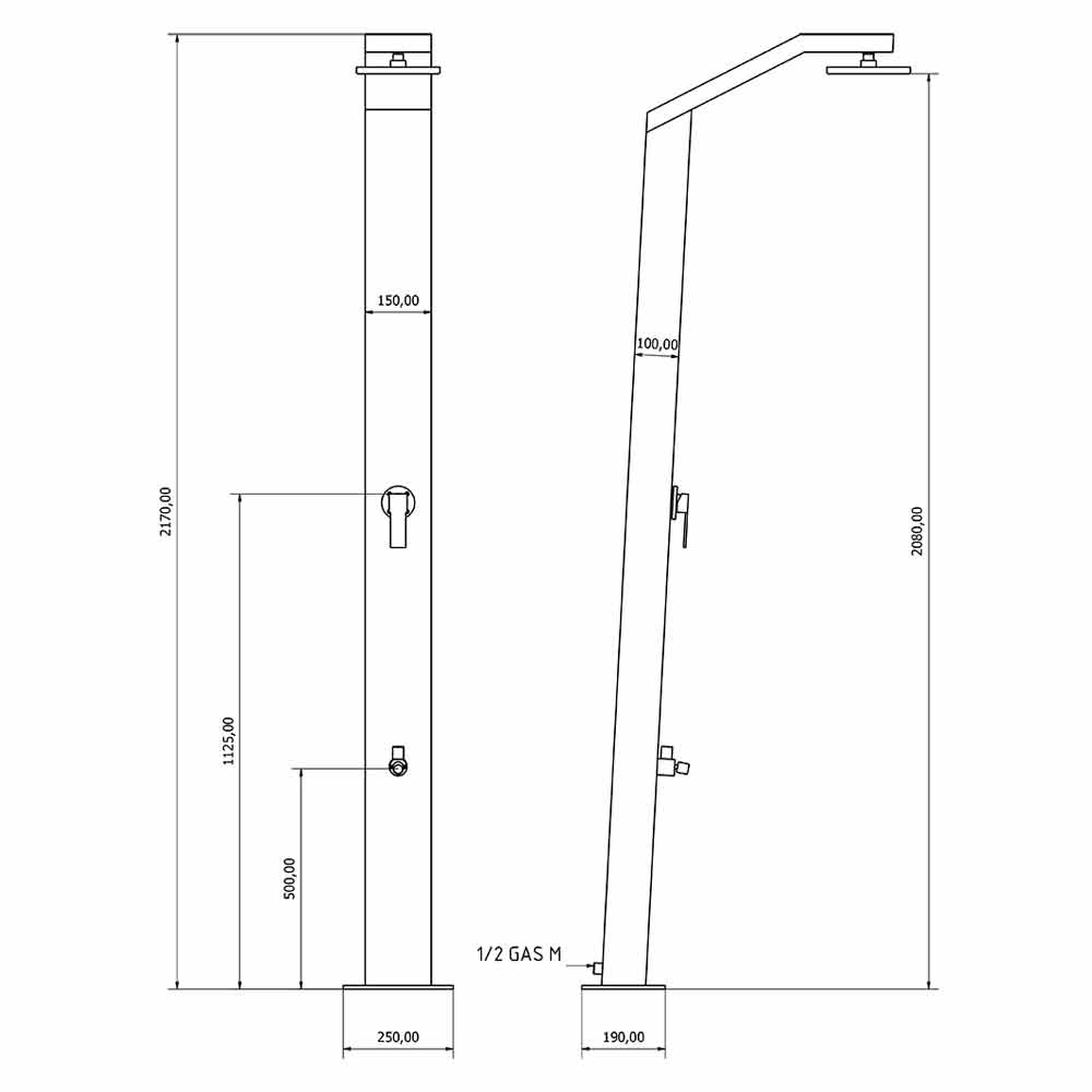 Solardusche für den Außenbereich , hergestellt in Italien, mit Säule aus