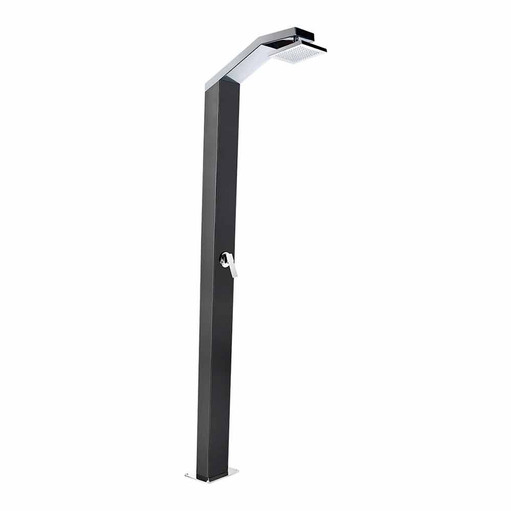 Solar-Gartendusche aus schwarz lackiertem Edelstahl, hergestellt in Italien.