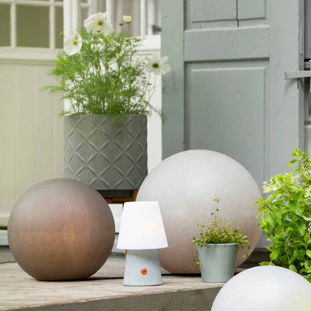 Die modernen Linien lassen sich aufgrund ihrer Kugelform ohne Kanten problemlos in jede Umgebung integrieren. Die Vielzahl von Größen und Farben kann einzeln oder in Gruppen positioniert werden und ermöglicht es Ihnen, Kompositionen zu erstellen , die immer persönlich und elegant sind. Das hochwertige Polyethylen, aus dem es hergestellt wird, macht das Produkt nachhaltig und recycelbar sowie widerstandsfähig und langlebig.
