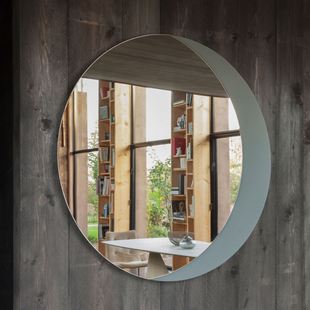 Runder Spiegel mit einfarbig lackiertem Glasboden, hergestellt in Italien