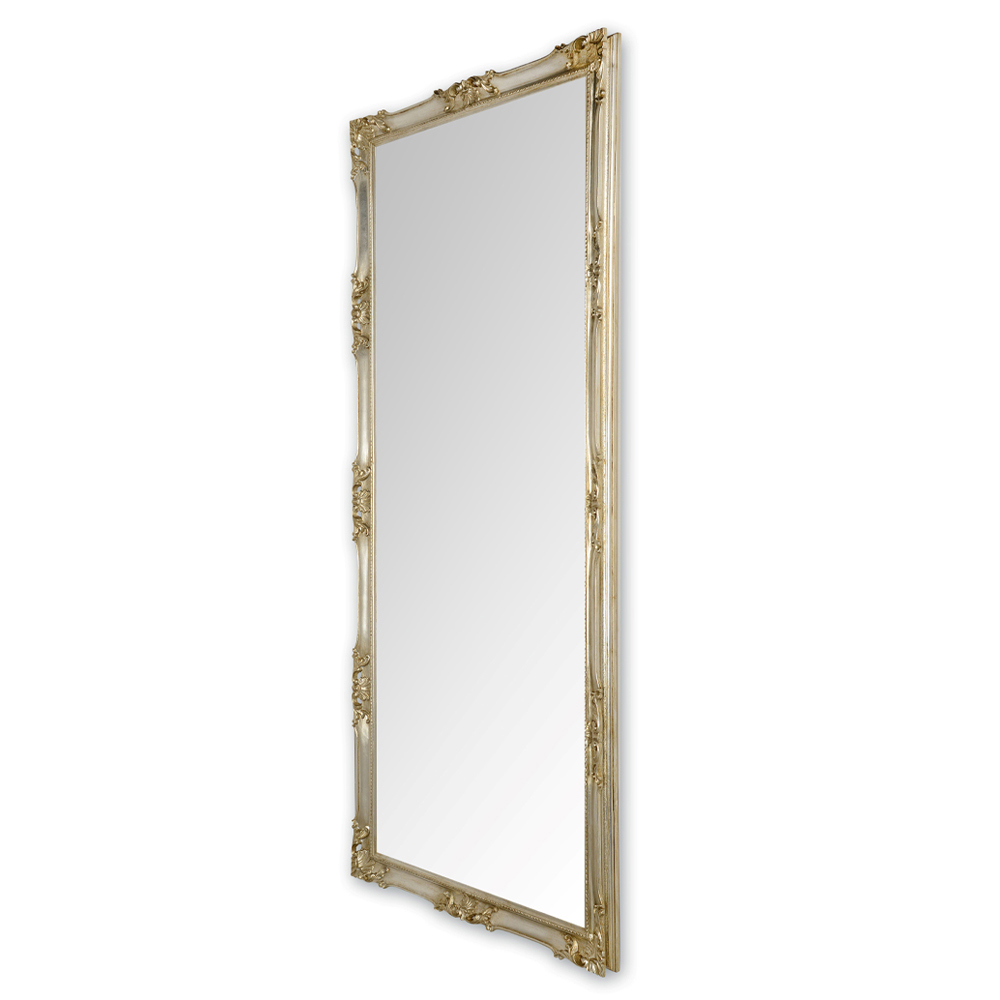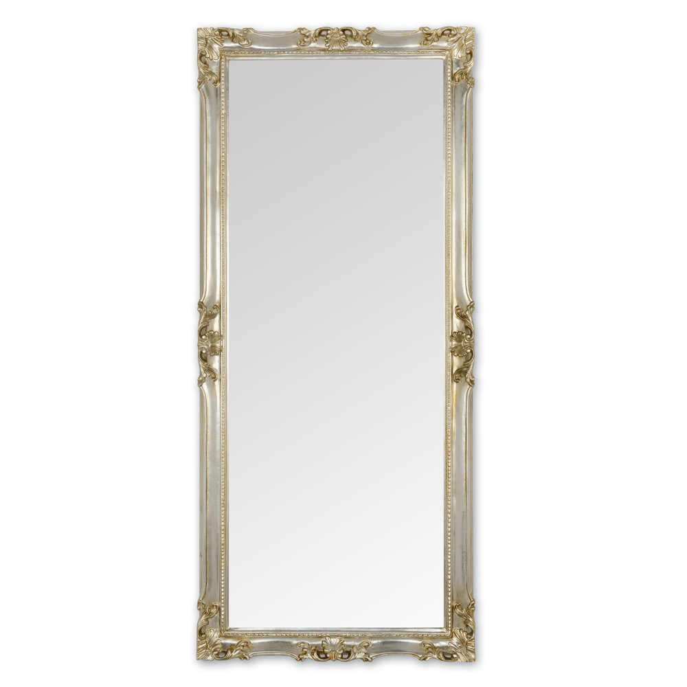 Komplett in Italien hergestellter Wandspiegel aus Kristall mit handgefertigtem Holzrahmen in Blattgold oder Blattsilber. Ein Möbelstück mit einer starken klassischen Persönlichkeit , das durch die wunderbaren Dekorationen, die den gesamten Rahmen charakterisieren, unterstrichen und bereichert wird und der endgültigen Ästhetik des Produkts einen Hauch von raffinierter Eleganz verleiht. Sein raffiniertes Design zusammen mit den wunderbaren vorgeschlagenen Oberflächen machen es zu einer idealen Lösung für die harmonische Einrichtung von Umgebungen im klassischen Stil, die dem Raum Persönlichkeit und Charakter verleiht.