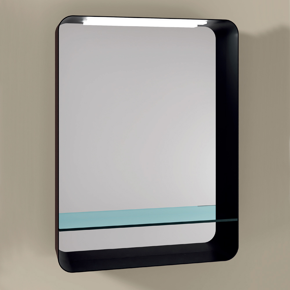 Dieser rechteckige Spiegel mit abgerundeten Kanten ist ein wahrer Triumph des modernen Designs. Sein Metallrahmen ist ein klares Statement für Eleganz und Stil , während die integrierte Glasablage für einen Hauch anspruchsvoller Funktionalität sorgt.