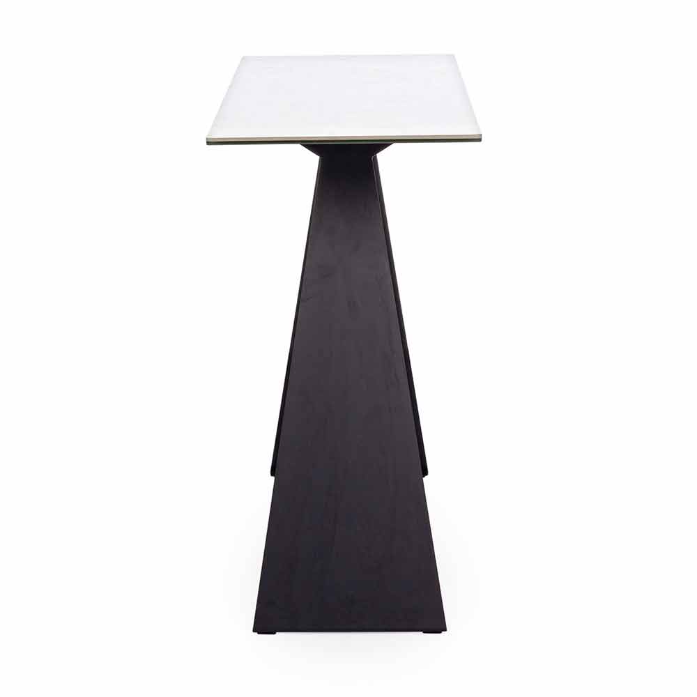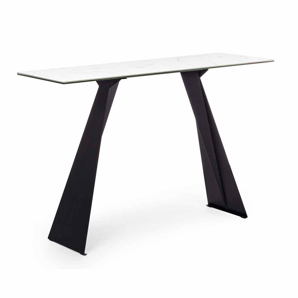 Stahlkonsole mit Glas- und Keramikplatte für ein modernes und luxuriöses Design.