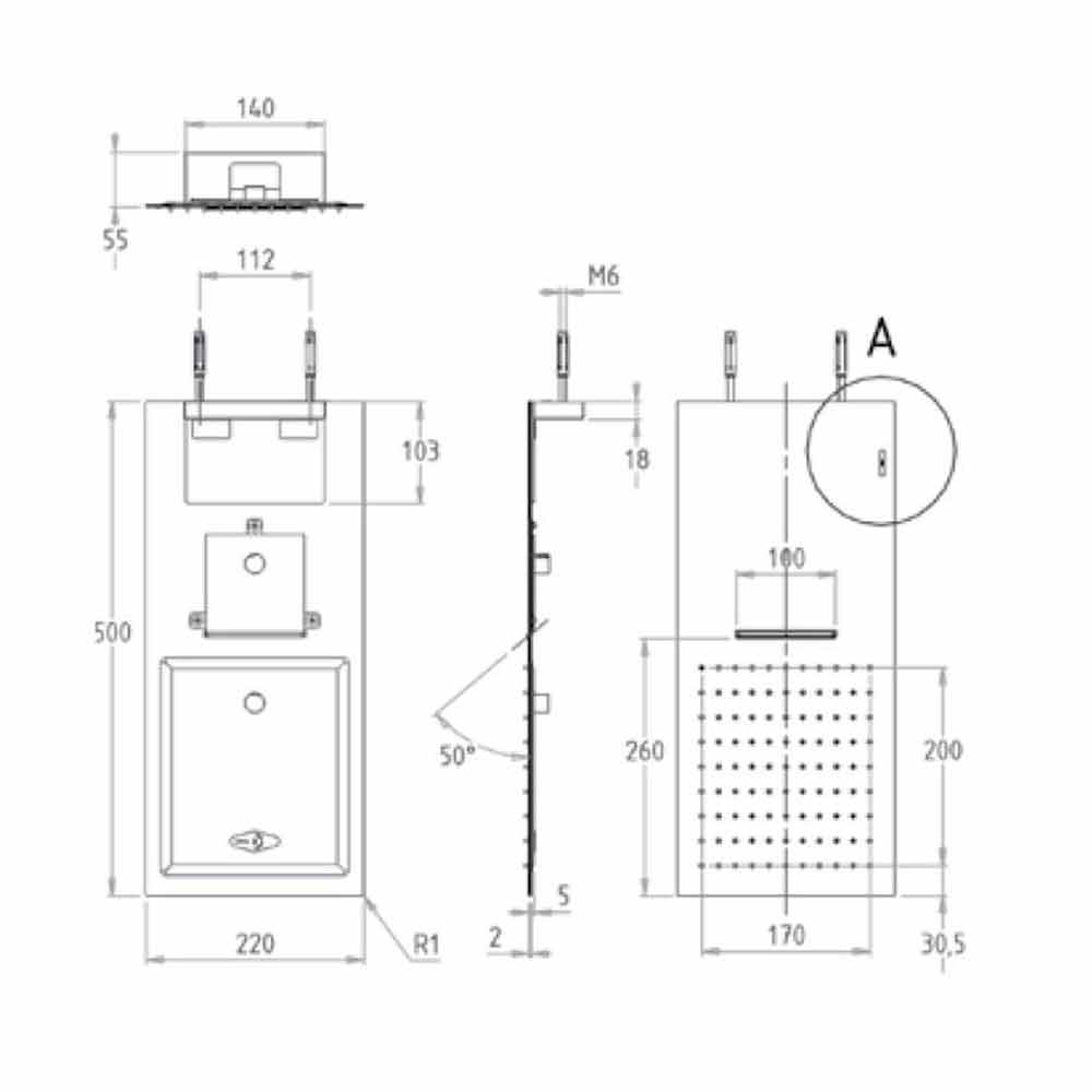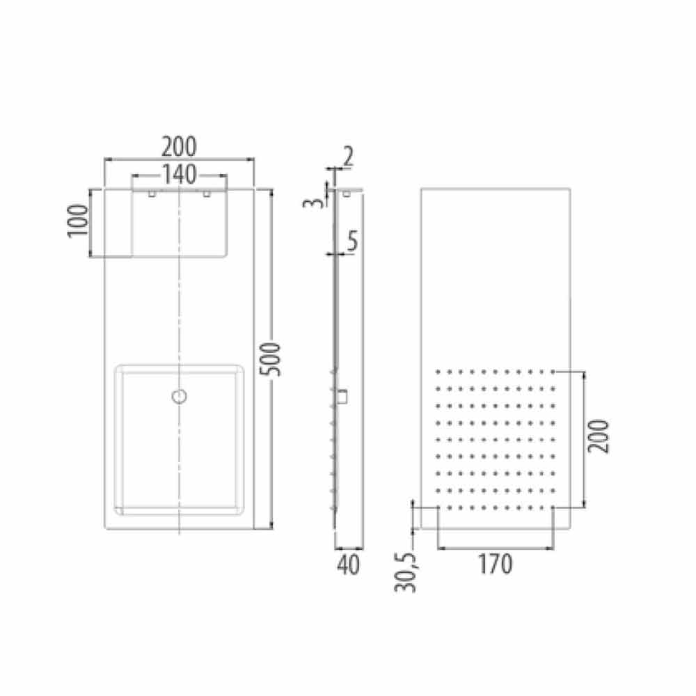 - wandmontierter Duschkopf aus ultraflachem, kalkbeständigem Stahl ;