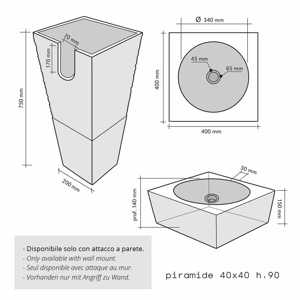 Säulenwaschbecken aus Naturstein - schwarz - agyptische Pyramidenform - Nias Modell