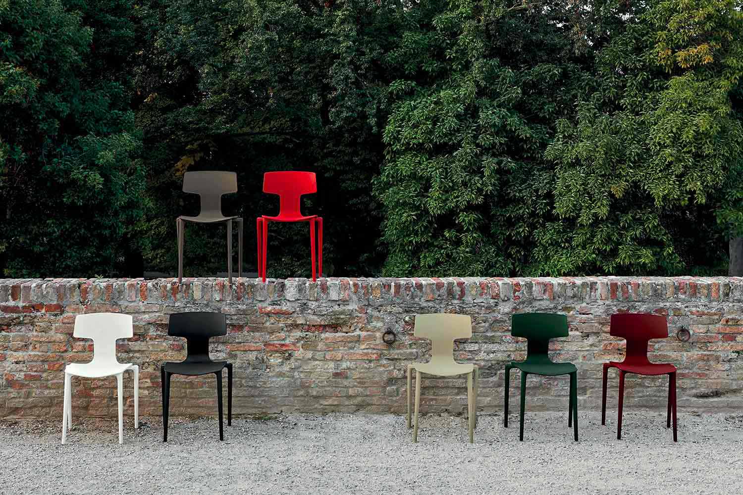 Stapelbare Outdoor-Stühle aus Polypropylen Hergestellt in Italien, 4 Stück.