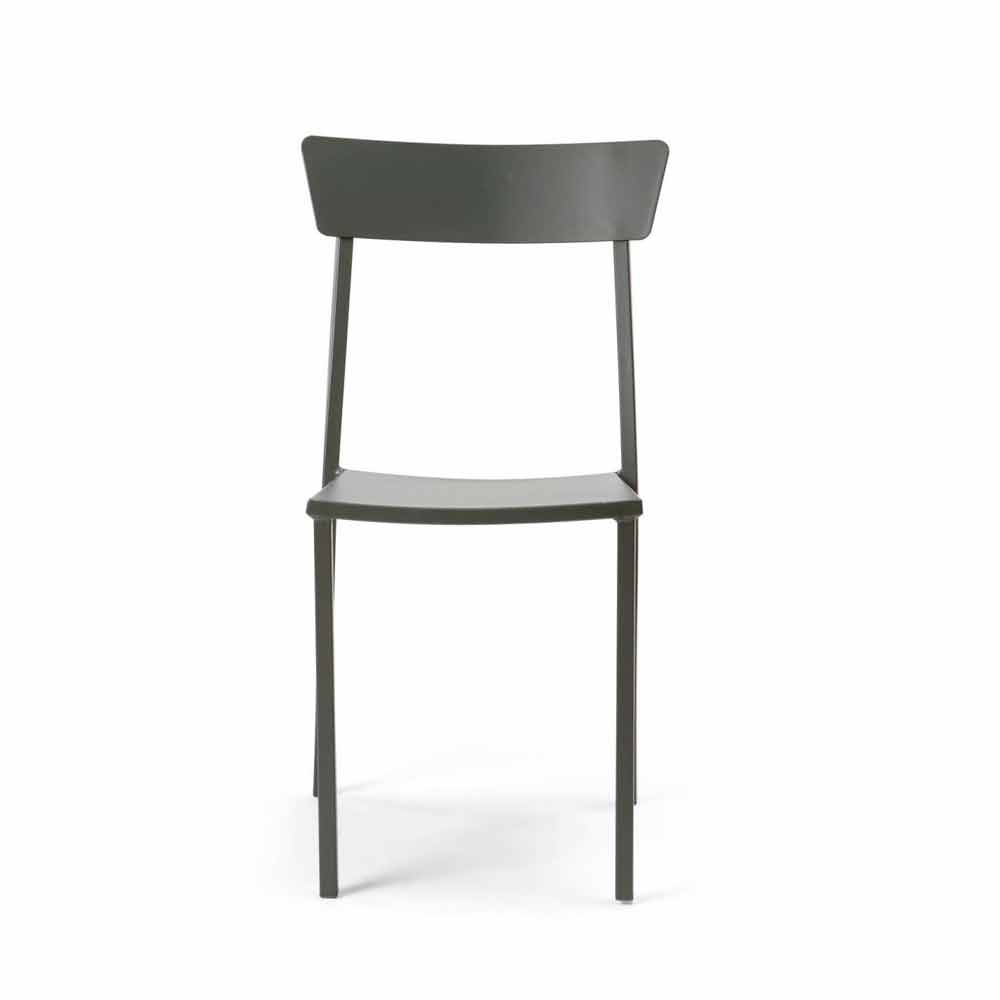 pulverbeschichtetem, verzinktem Eisen mit duroplastischen Pulvern, die jedem Produkt Festigkeit und Stabilität verleihen und gleichzeitig dafür sorgen, dass Farben und Oberflächen im Laufe der Zeit unverändert bleiben. Dank der großen Farbpalette und der Möglichkeit, ihn zur optimalen Raumnutzung zu stapeln, passt dieser Stuhl perfekt in jede Outdoor-Situation, von klassisch bis modern und zeitgenössisch, und verleiht ihm Persönlichkeit und Farbe.