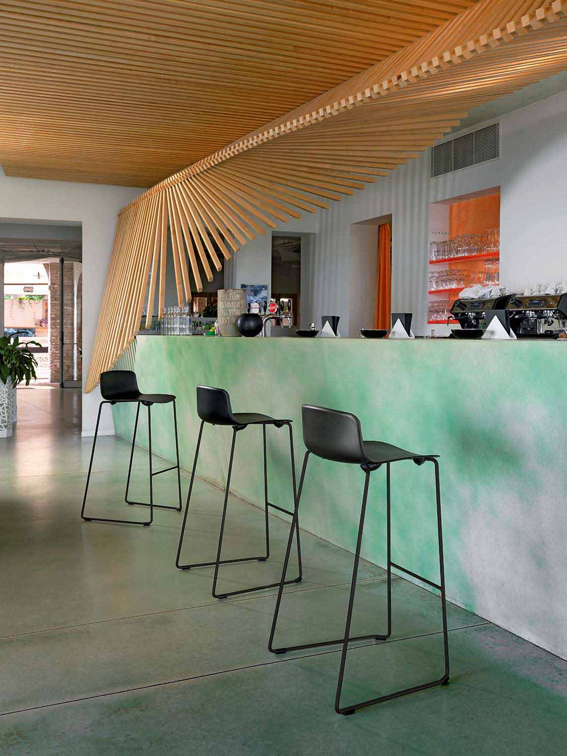 Der Charla-Außenhocker zeichnet sich durch ein minimalistisches und modernes Design aus, das sich dank der Vielseitigkeit der in 7 verschiedenen Farben erhältlichen Polypropylenschale perfekt an jeden Möbelstil anpasst.