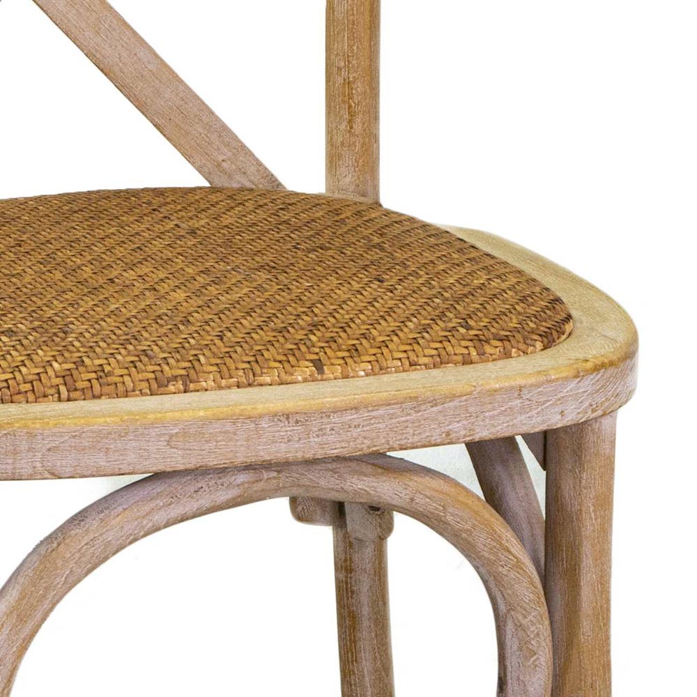 Die Kreuz-förmige Rückenlehne mit geschwungenen Linien und die konturierte Sitzfläche garantieren maximalen Komfort während des Gebrauchs und machen ihn zur idealen Wahl für Esszimmer , Küchen oder Gebäude wie charmante Restaurants und Bistros. Das natürliche Holzfinish unterstreicht die warme Textur und die einzigartige Maserung des Materials und verleiht ihm einen Hauch von Willkommenheit und Authentizität.