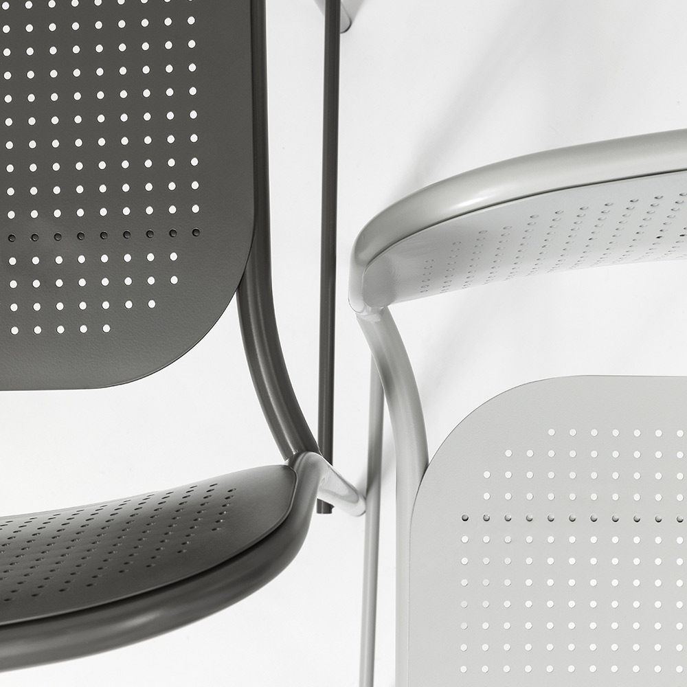 lebendige und lustige Ästhetik suchen, aber auch für diejenigen, die einen nüchterneren und eleganteren Stil lieben. Die Möglichkeit des Stapelns betont auch seine funktionale Seite und macht es zu einer perfekten Lösung auch für Objektumgebungen wie Bars und Restaurants, wo es wichtig ist, den Raum zu optimieren, wenn die Sessel nicht benutzt werden.