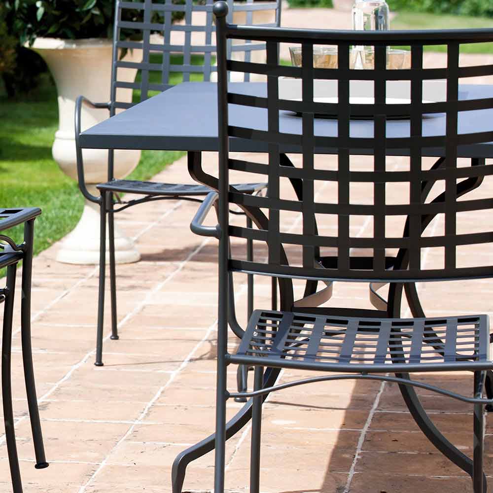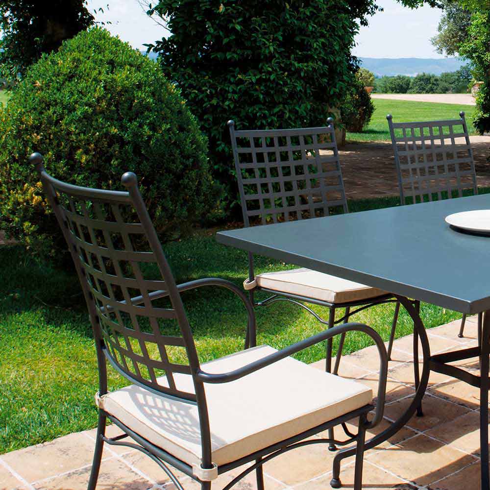 Diese Outdoor-Sessel vereinen klassische Linien mit einem moderneren Stil, der durch die verwendeten Farben und Techniken entsteht. Jeder Sessel wird vollständig in Italien aus pulverbeschichtetem, verzinktem Eisen mit duroplastischen Pulvern hergestellt und ist unglaublich robust und widerstandsfähig. Dabei behält er sein leichtes Design, seine schlichten Linien und seine hohe Funktionalität. Ideal für private Umgebungen wie Gärten und Terrassen, aber auch für Bars und Restaurants, wo sie Persönlichkeit und Charakter verleihen und gleichzeitig dank der Stapelbarkeit bei Bedarf den Raum optimal nutzen.