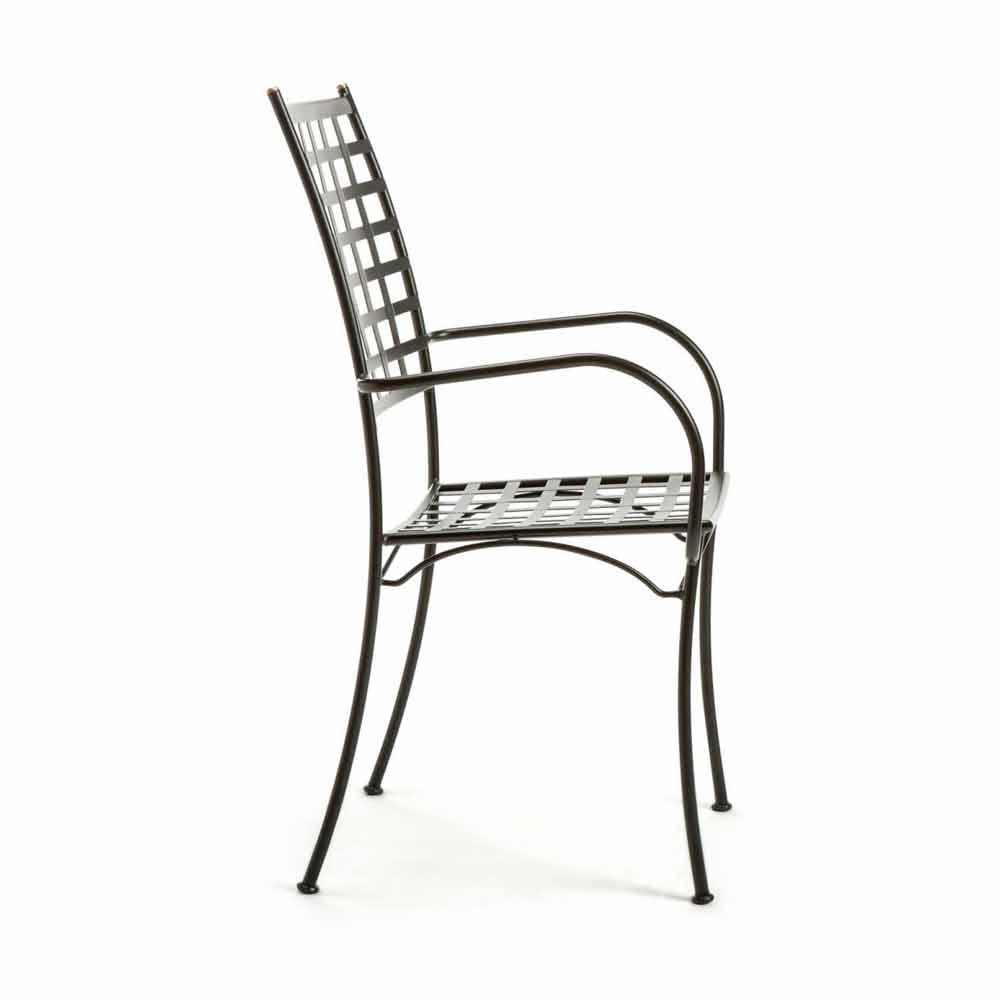 Outdoor-Sessel aus pulverbeschichtetem verzinktem Eisen mit stapelbaren Armlehnen. Hergestellt in Italien, 4 Stück.