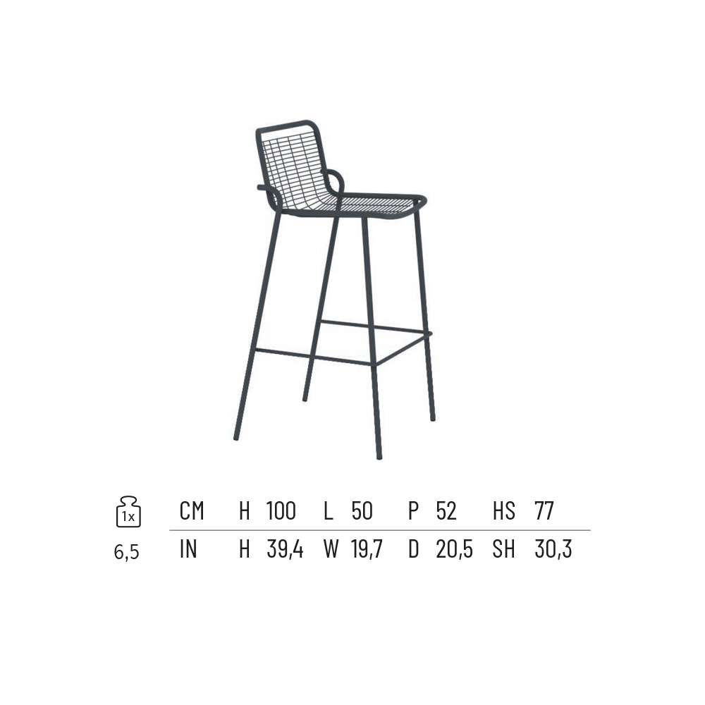 Stapelbarer Gartenhocker mit Fußstütze. Made in Italy, 2 Stück.