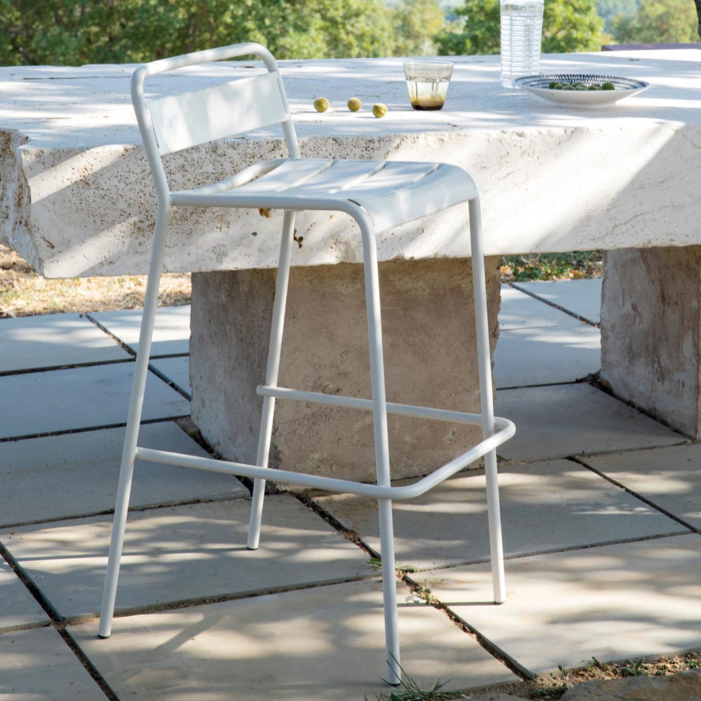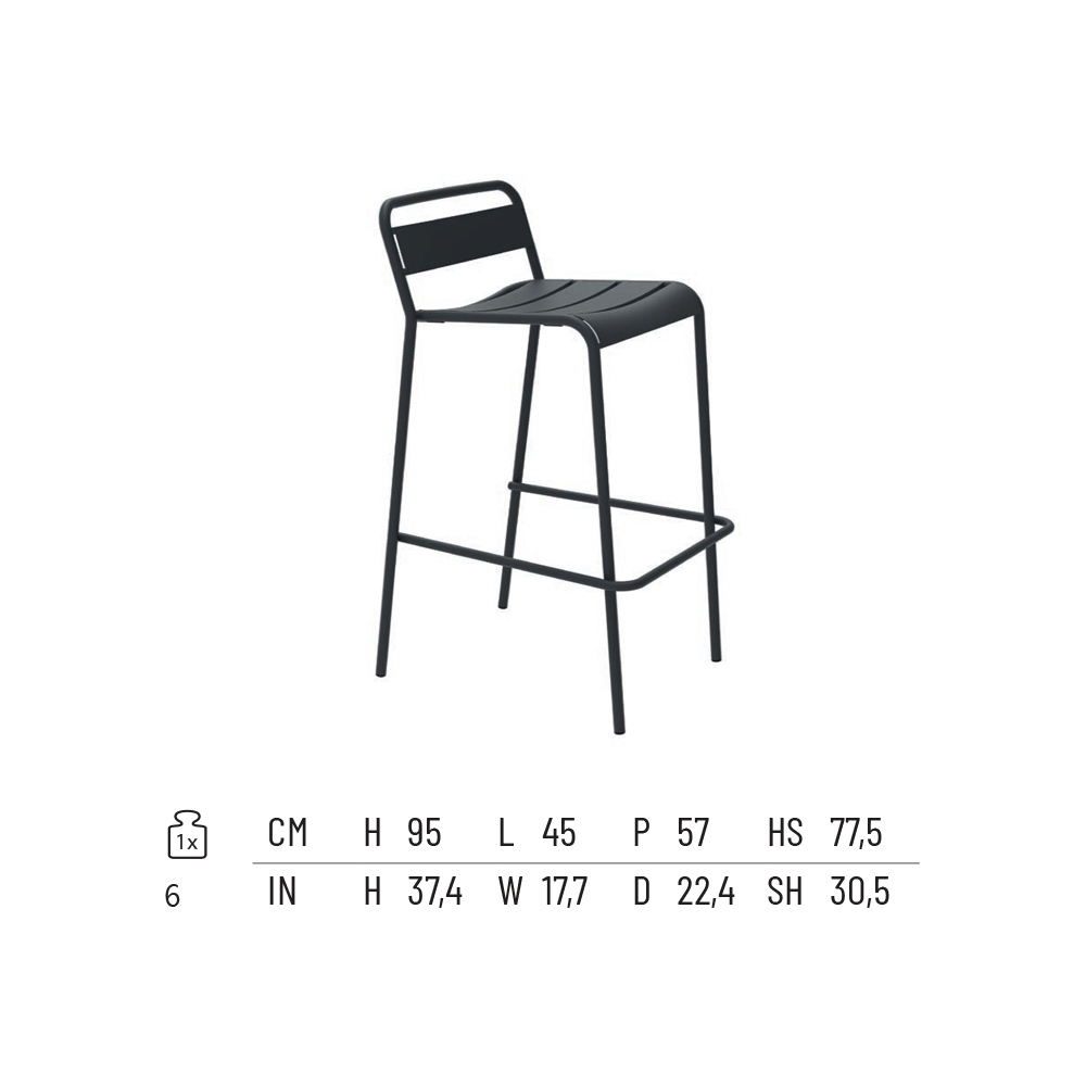 Stapelbarer Outdoor-Hocker aus pulverbeschichtetem verzinktem Eisen, farbig verzinkt. Hergestellt in Italien.
