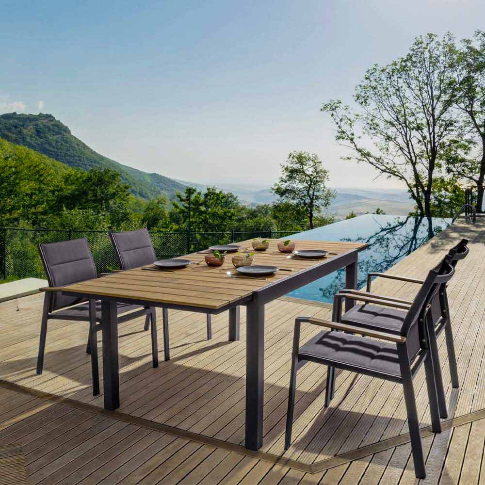 Stapelbarer Gartenstuhl aus anthrazitgrauem Aluminium und Teak - Aidan