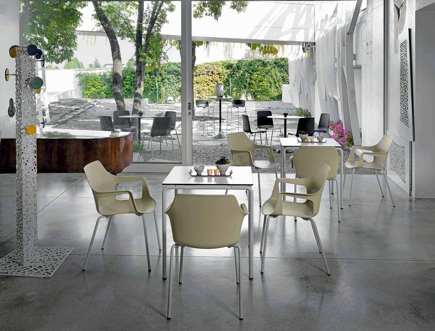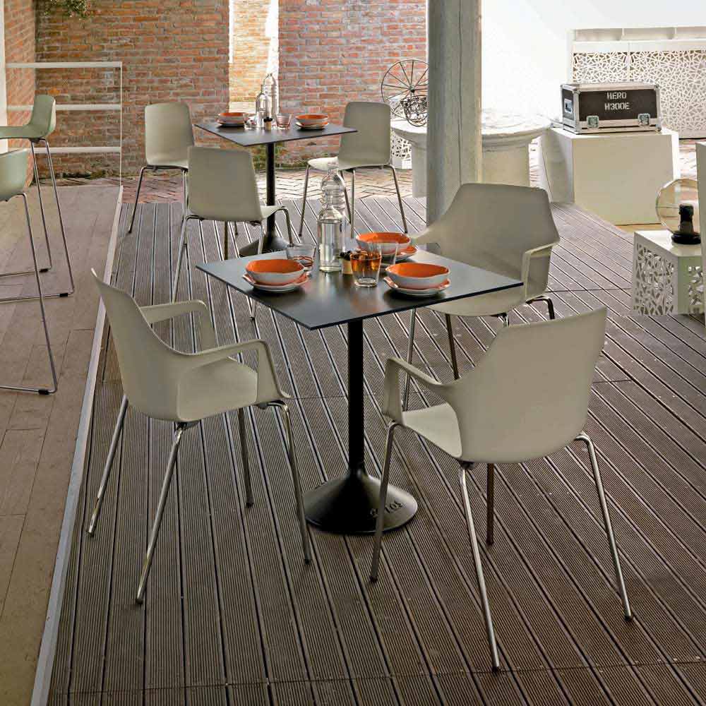Stapelbarer Esszimmerstuhl aus Metall und Polypropylen mit Armlehnen Hergestellt in Italien, 4 Stück.