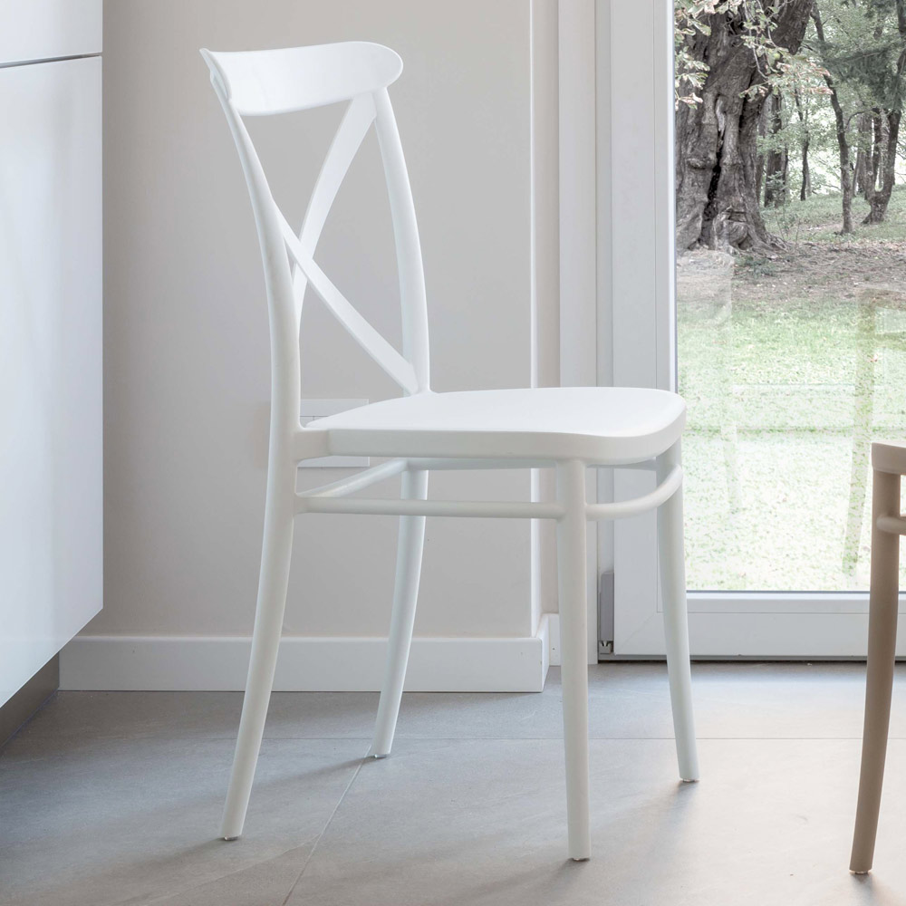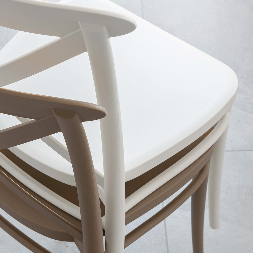 glasfaserverstärktem Harz. Dieses Produkt ist für alle gedacht, die Funktionalität mit Einfachheit verbinden möchten. Tatsächlich eignet sich dieser Stuhl perfekt für den Einbau in Wohnbereiche, Küchen und Esszimmer, sowohl im Innen- als auch im Außenbereich, wo alltägliche Familienmomente erlebt werden und wo Praktikabilität von entscheidender Bedeutung ist. Dank der für die Produktion verwendeten Materialien möchten wir dem Kunden ein Produkt garantieren, das nicht nur schön anzusehen, sondern auch hochwertig und langlebig ist
