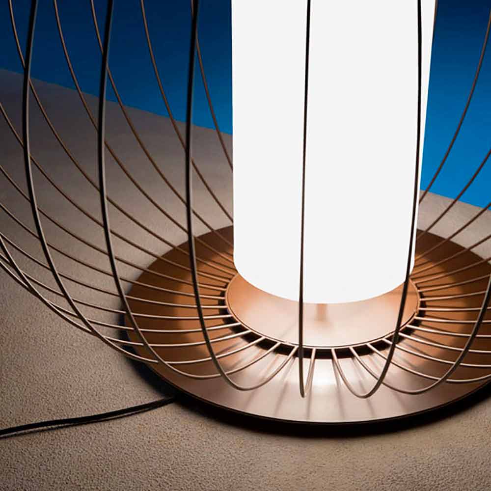 Diese originelle und einzigartige Tischlampe hat ein Design, das von Laternen inspiriert ist, die in den Himmel fliegen und ihre Struktur und ihren Geist dank ihrer dünnen Linien, die der Luft aus Metalldraht trotzen, für eine minimale Ergänzung mit einem starken Charakter wiedergeben.