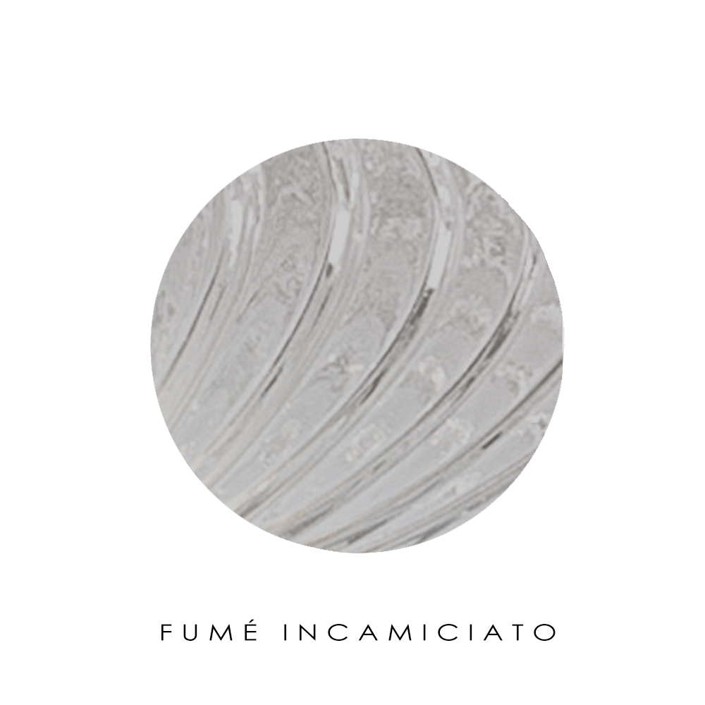 Ein Juwel der Raffinesse und Eleganz aus überzogenem oder transparentem Glas, das mit einer gerippten Verarbeitung versehen ist, um einen starken visuellen Effekt und beispiellose Lichtspiele in jedem Wohn- oder Objektbereich zu erzeugen.