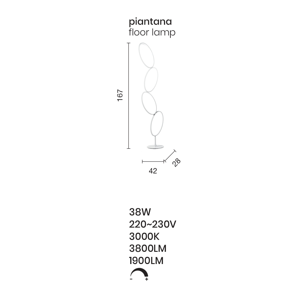 LED-Stehlampe aus Metall mit Acryl- und Silikondiffusor.