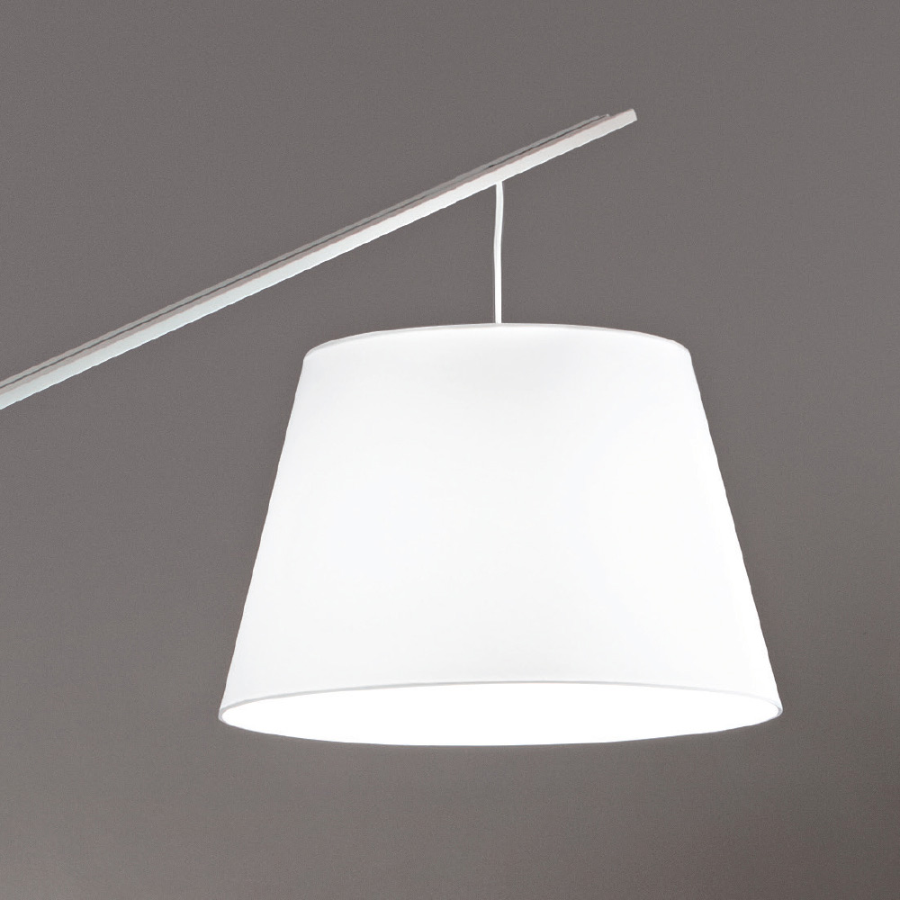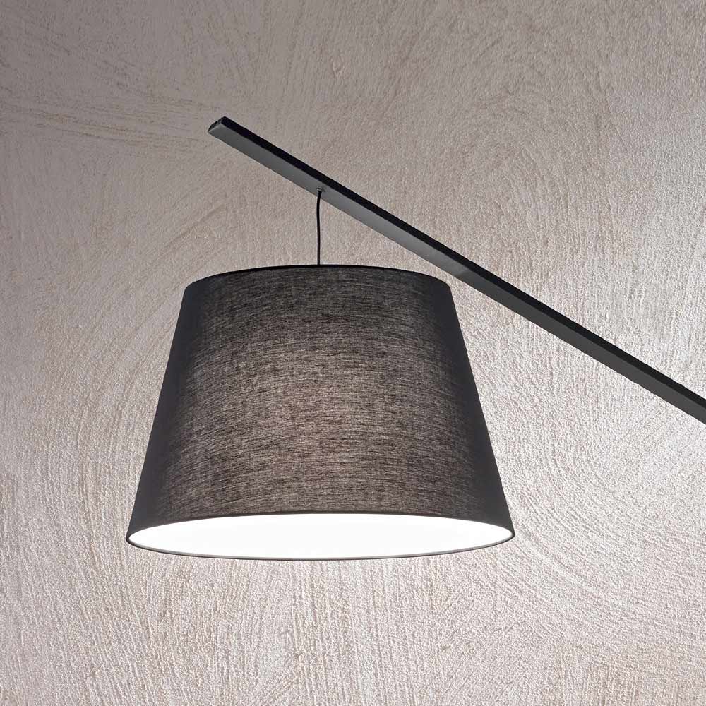 Moderne Stehleuchte aus Metall mit stoffbezogenem PVC-Lampenschirm.