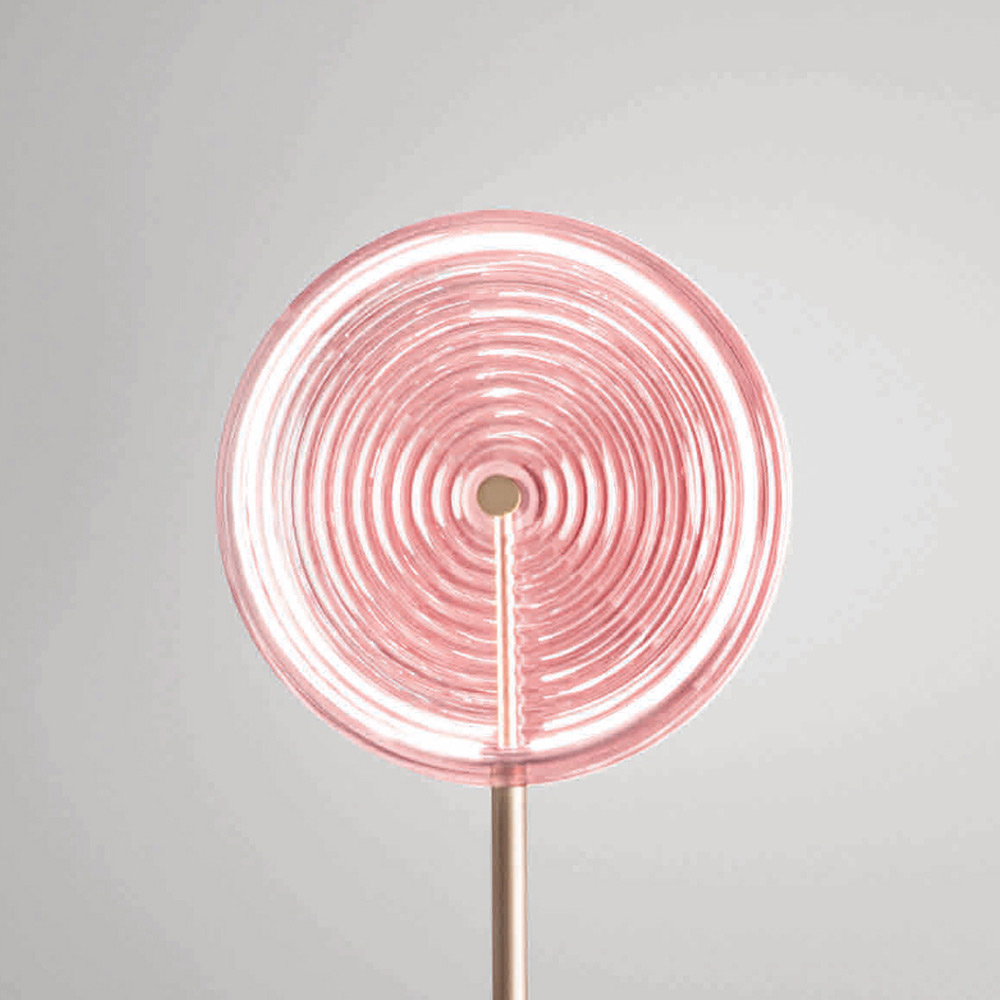 goldfarben lackiertem Metall, Glas mit rosafarbenen konzentrischen Linien und