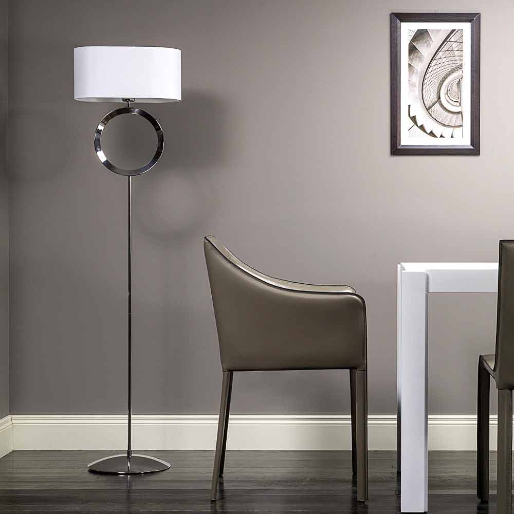 Moon ist eine Stehlampe mit einem modernen Design. Die Struktur besteht aus Stahl, während der Lampenschirm weiß ist. Dank seines vielseitigen Designs kann es in jeder Umgebung, von zu Hause bis ins Büro, aufgestellt werden.