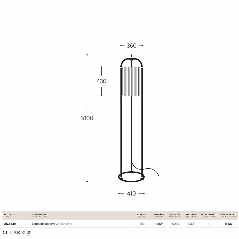 Klassische Stehleuchte aus Messing und Stoff Hua Hika