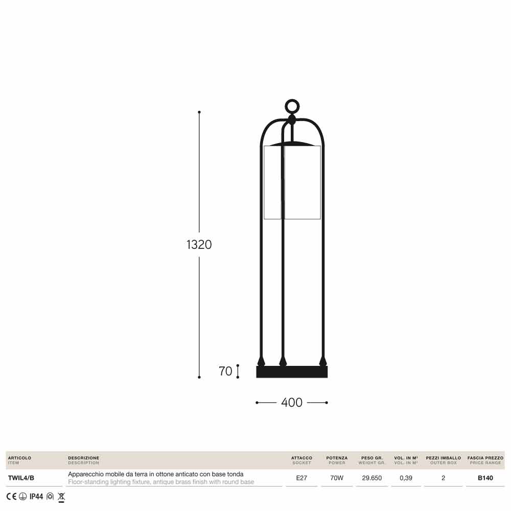 Stehlampe für den Außen Messing Pitosforo