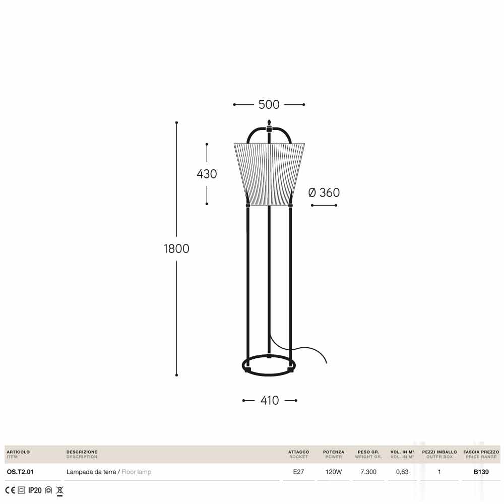 Tenarunga Stehlampe, Antikmessing, 1 Licht